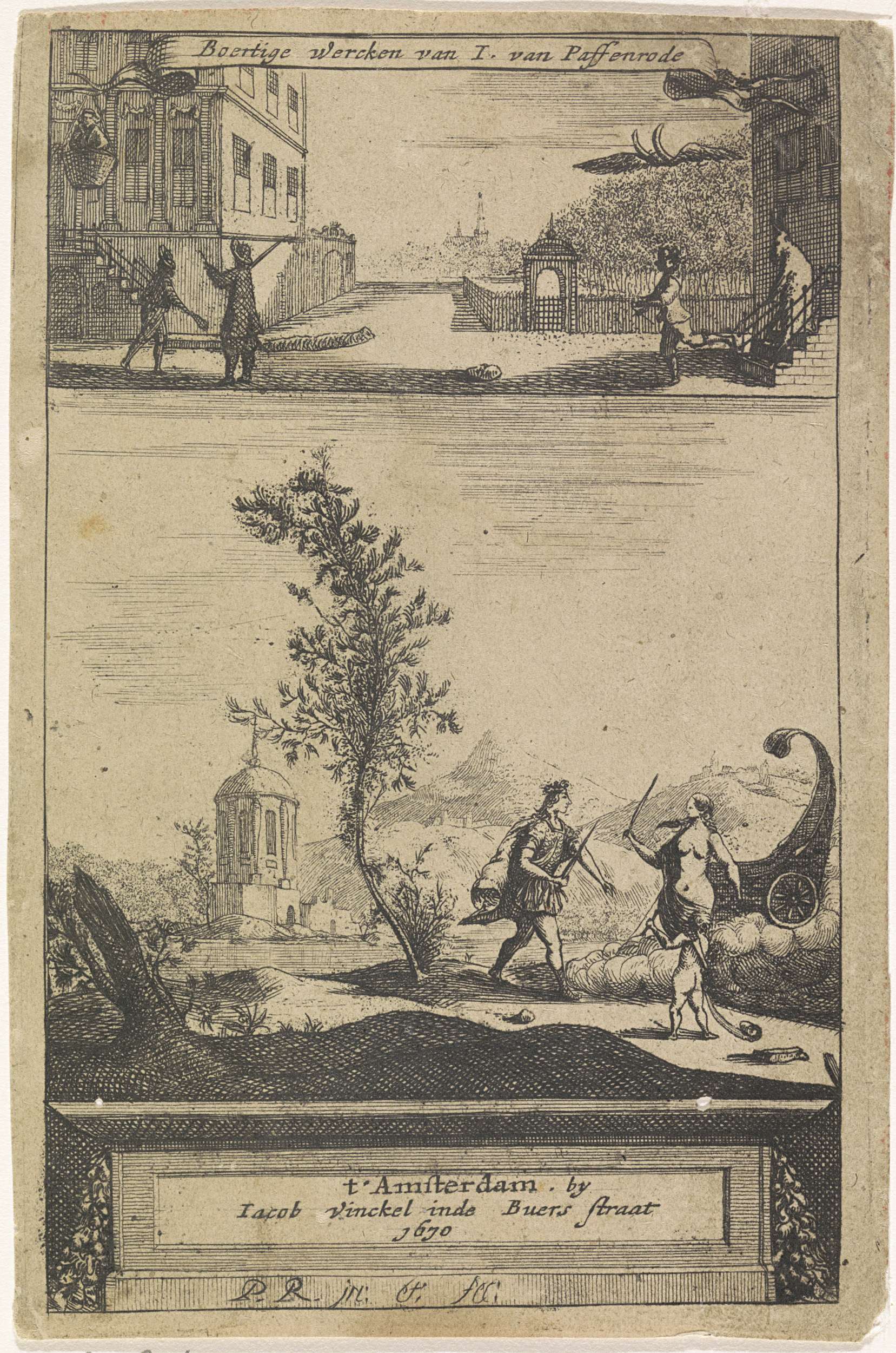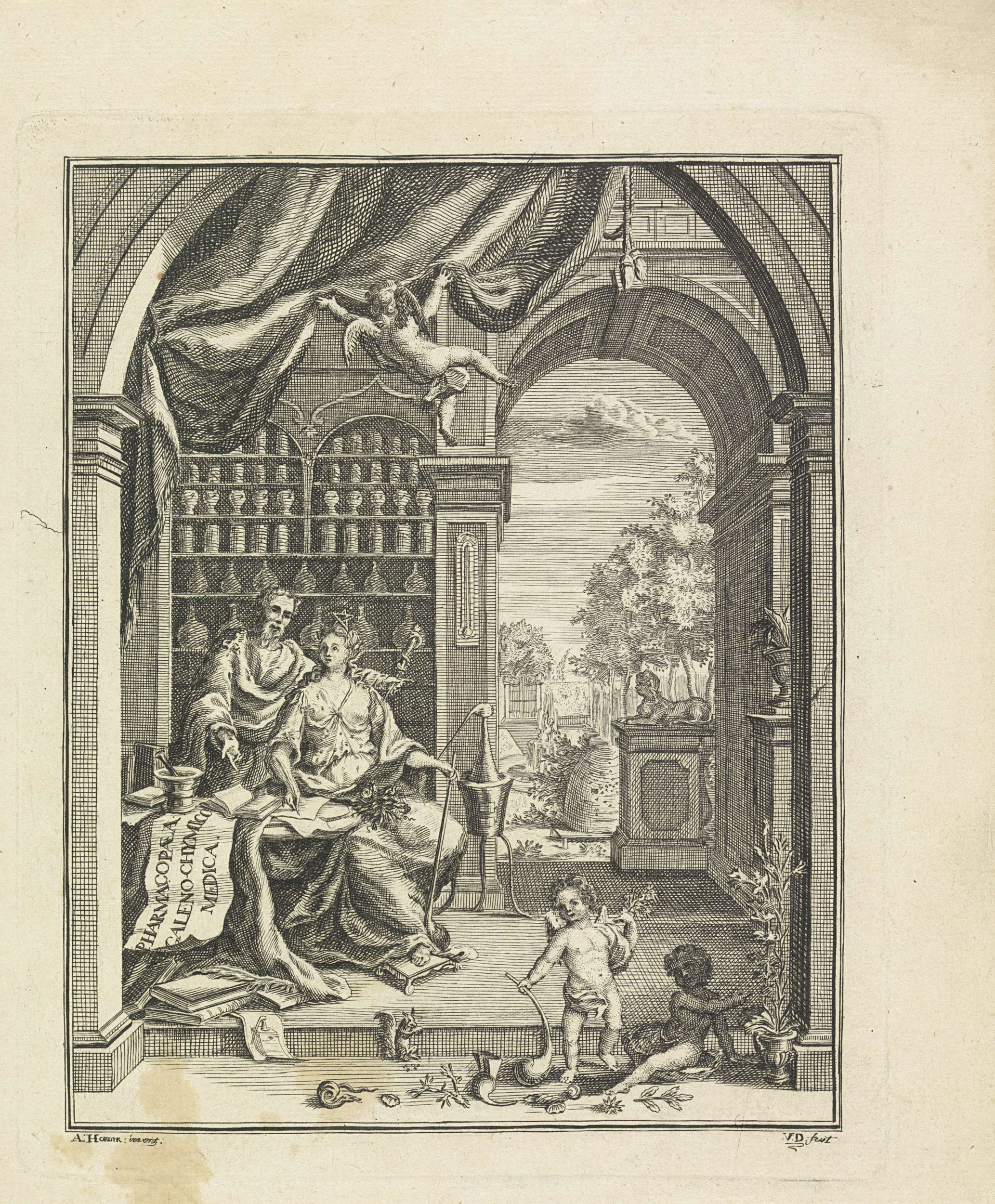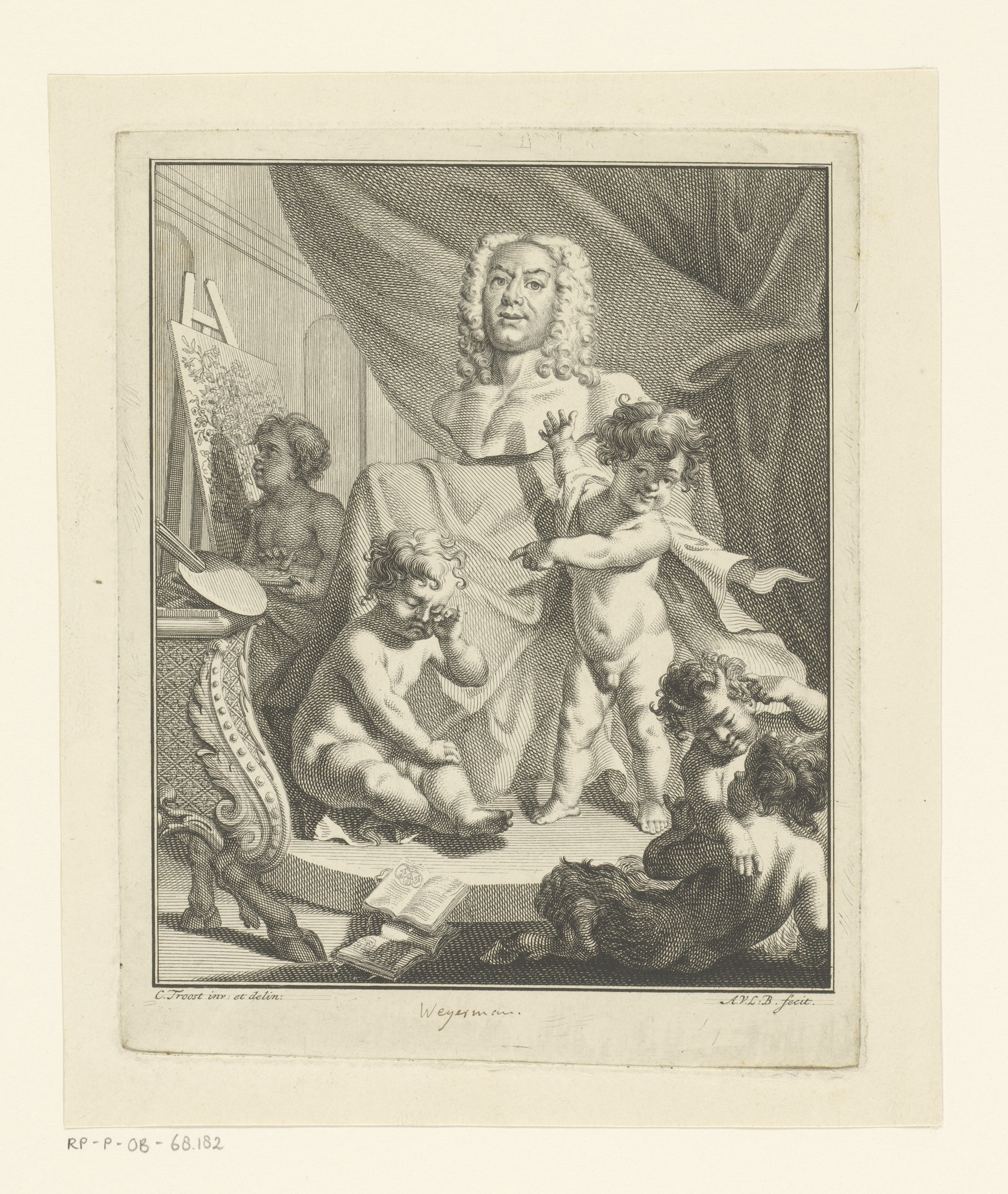 Putti rond een buste van Jacob Campo Weyerman