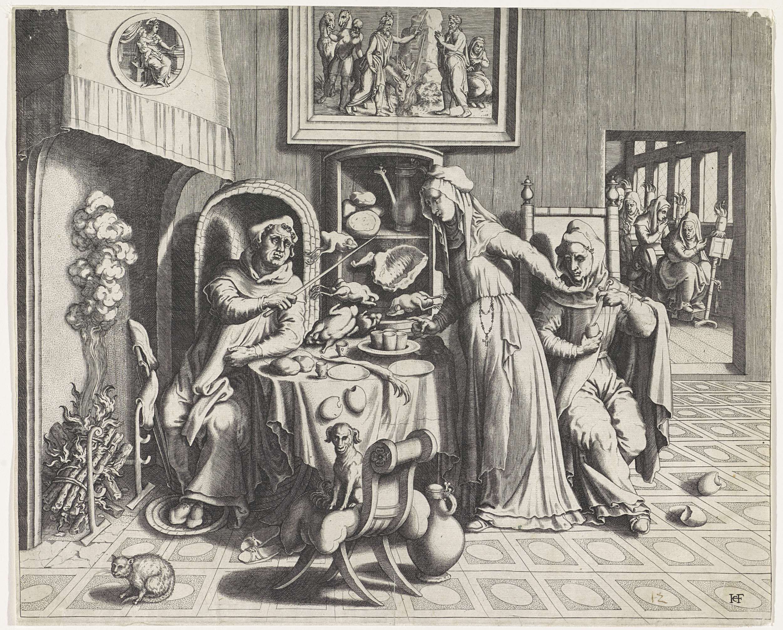 Paus en prelaten rond een duivelse prediker