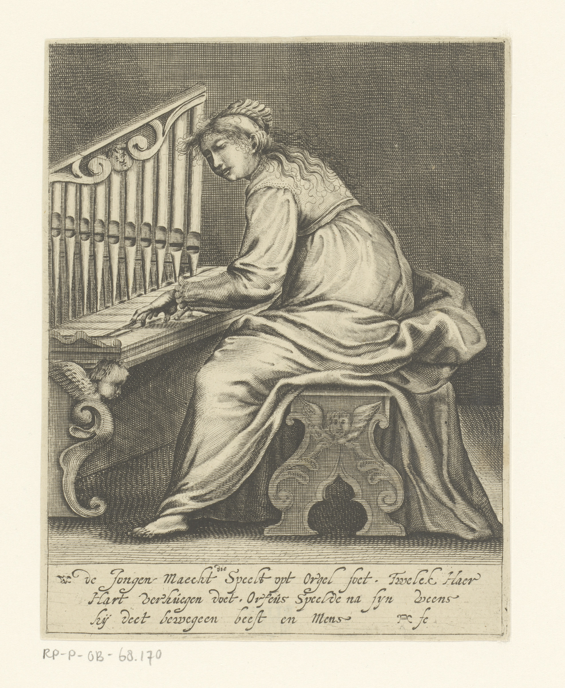 Jonge vrouw bespeelt een orgel