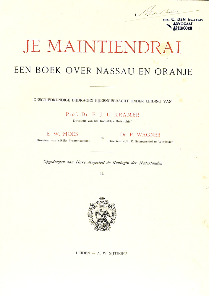 Je maintiendrai : een boek over Nassau en Oranje : g...