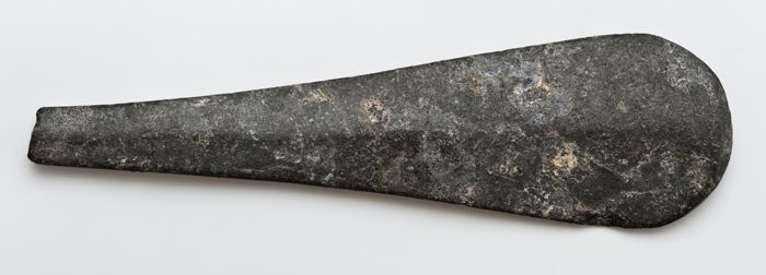 Tinnen lepel met ovaal blad