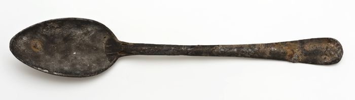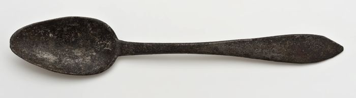 Kleine metalen lepel met langwerpige bak