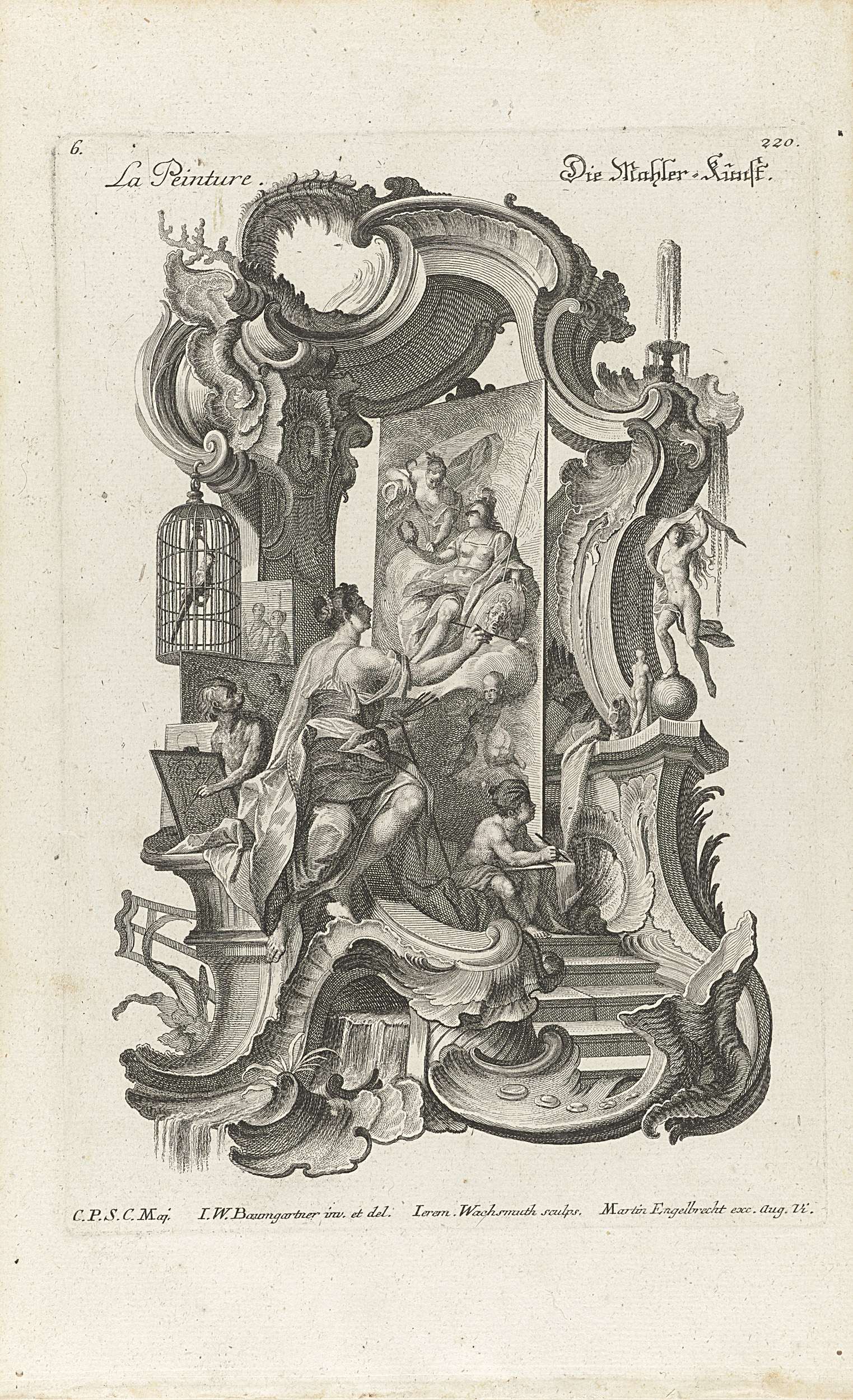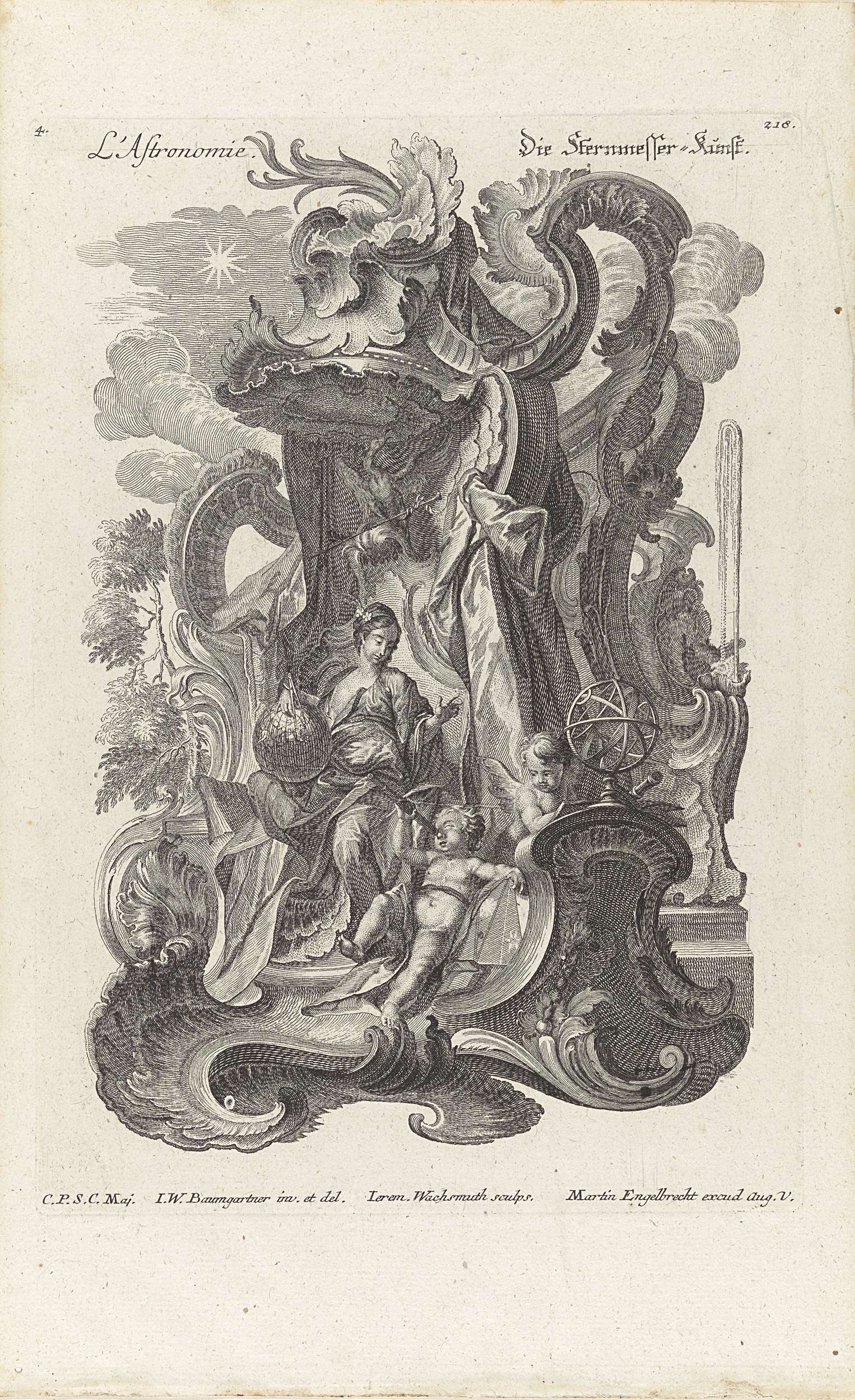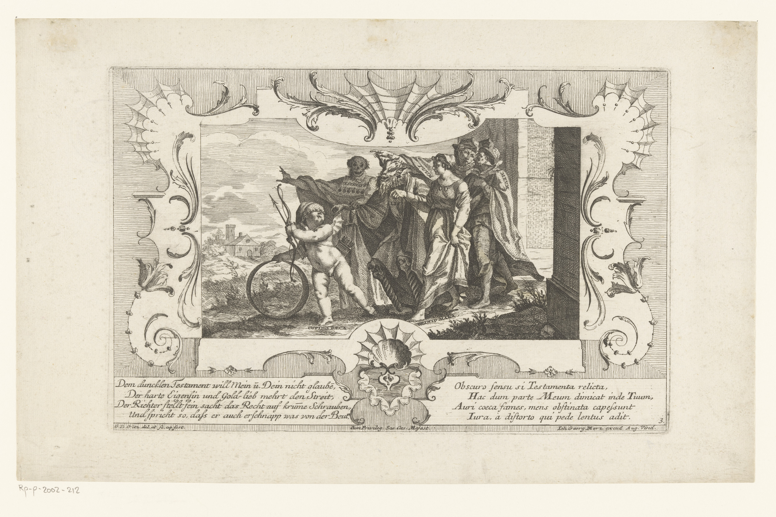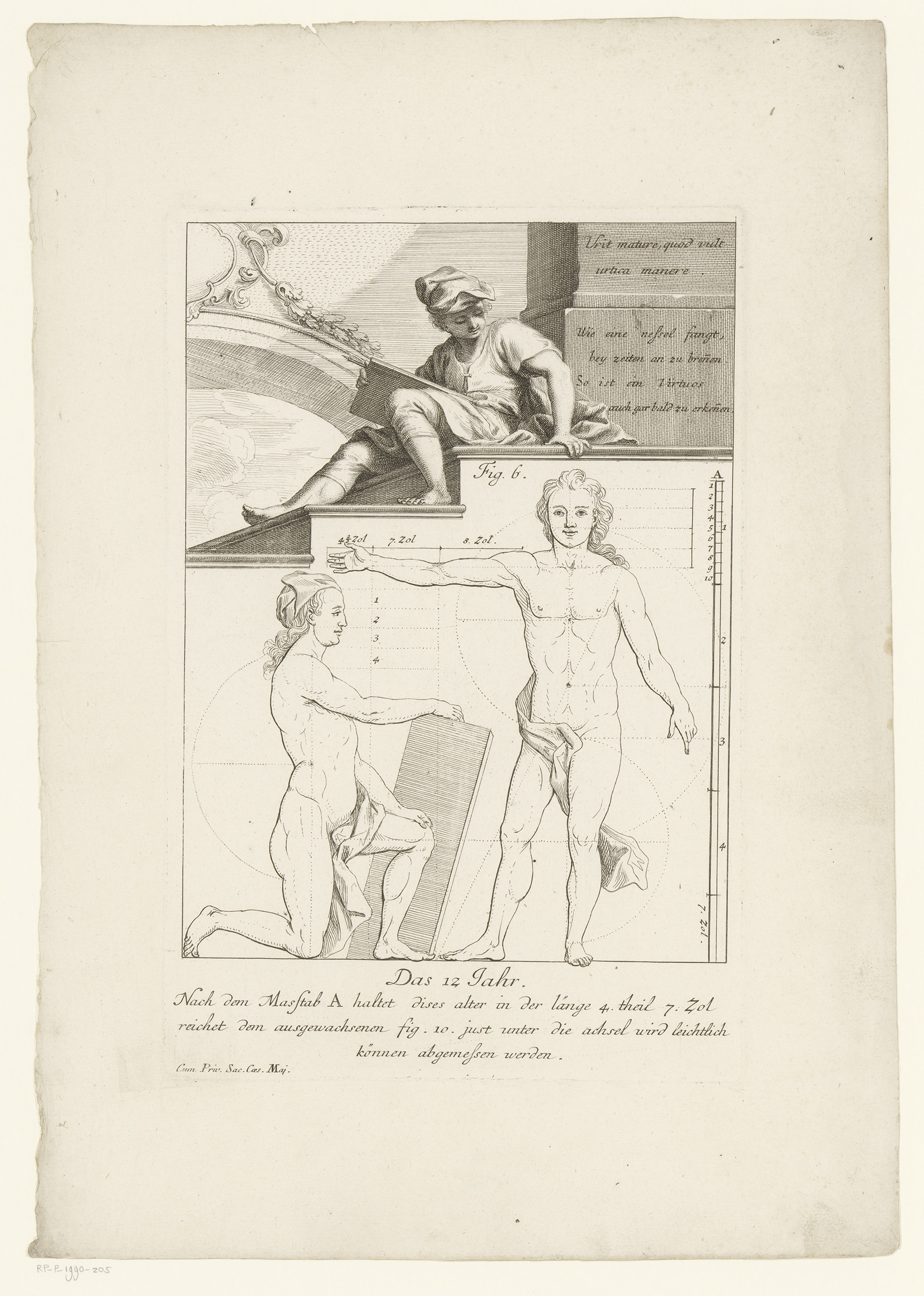 Putti met meetinstrumenten en aanzichten van een 3-j...