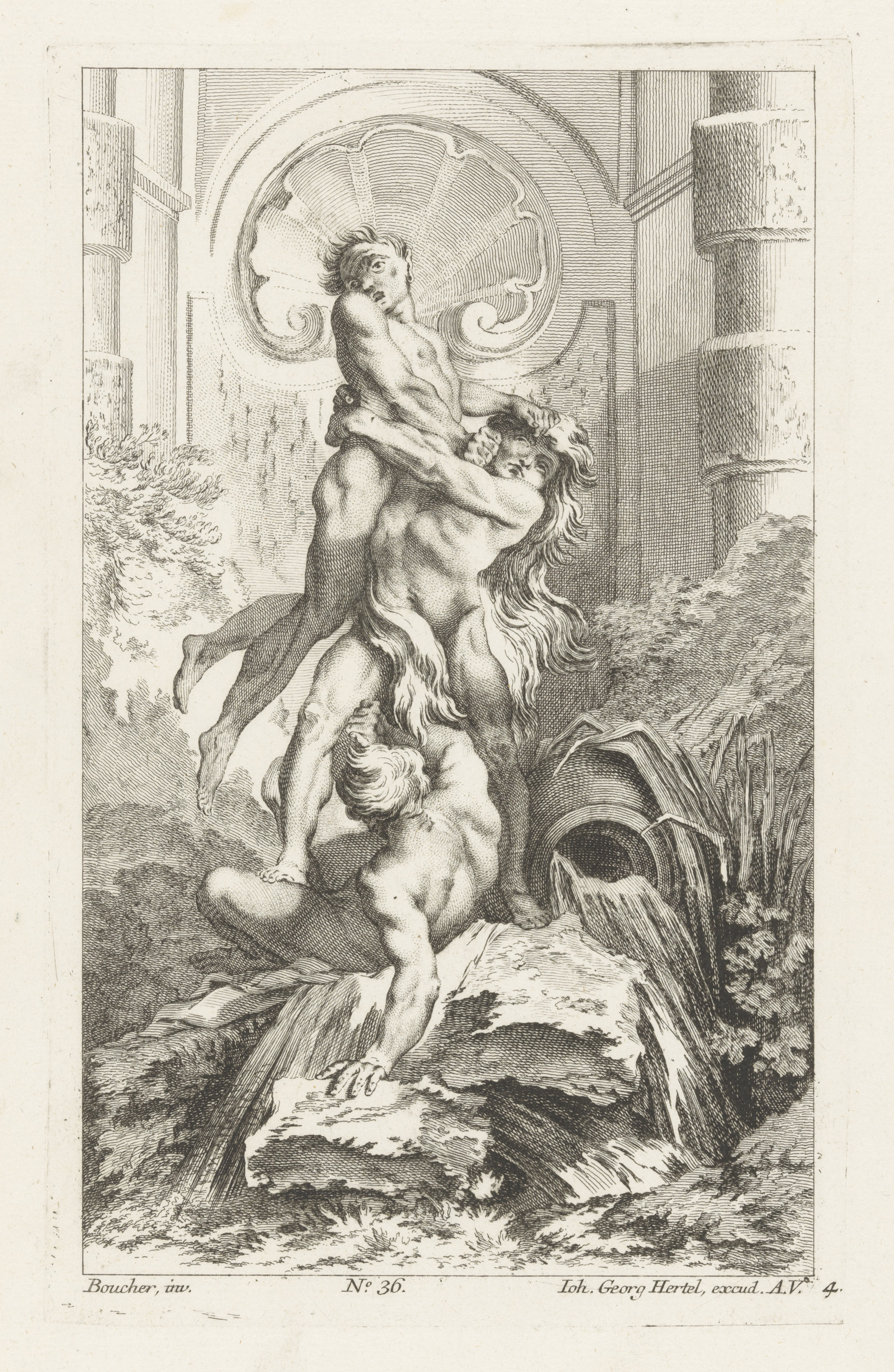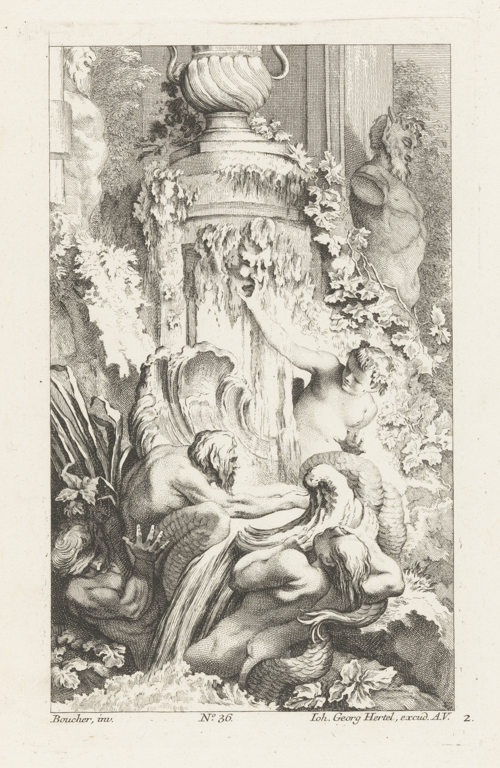 Fontein met meermannen en saterbeeld