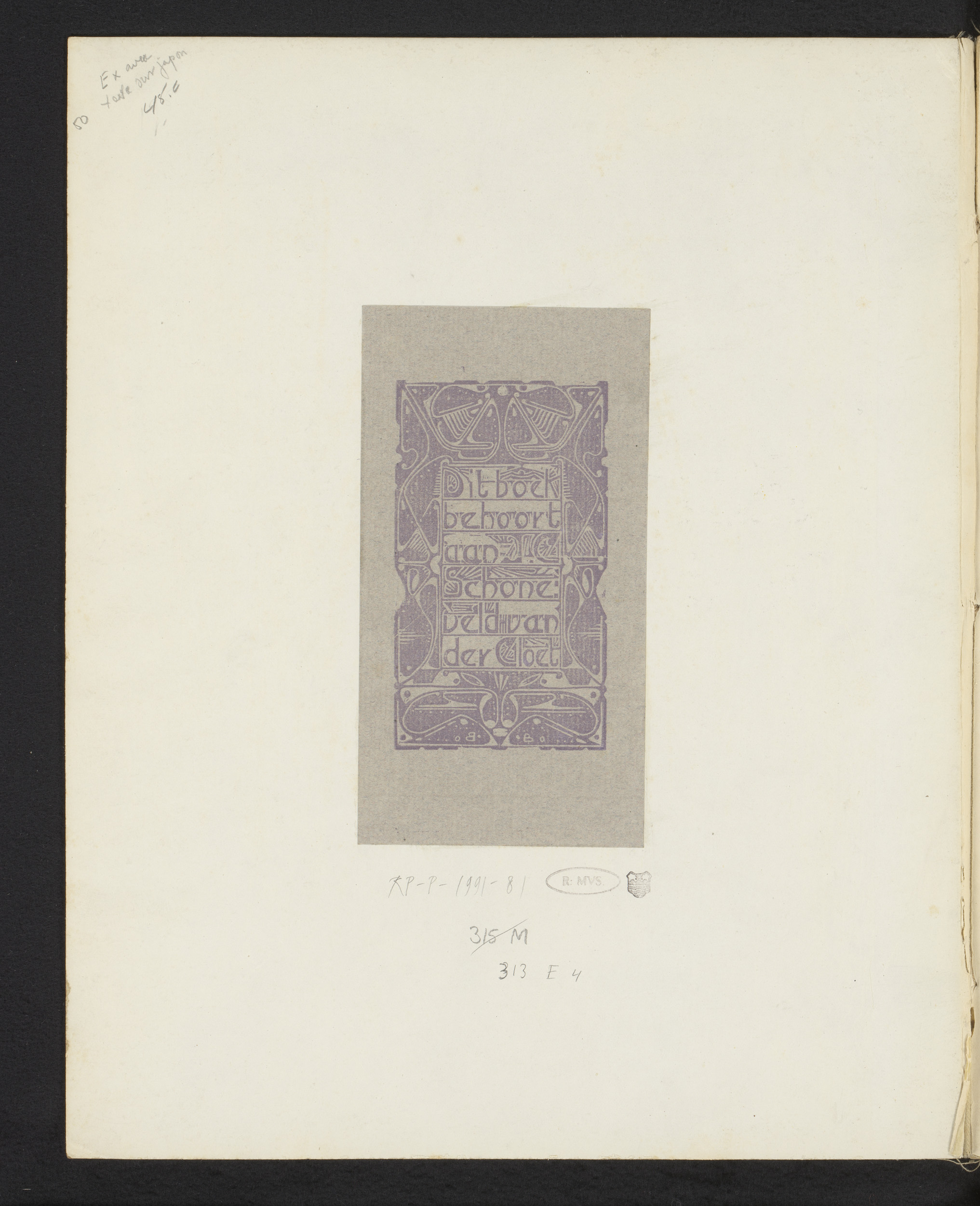 Ex libris van J.G. Schoneveld van der Gloet