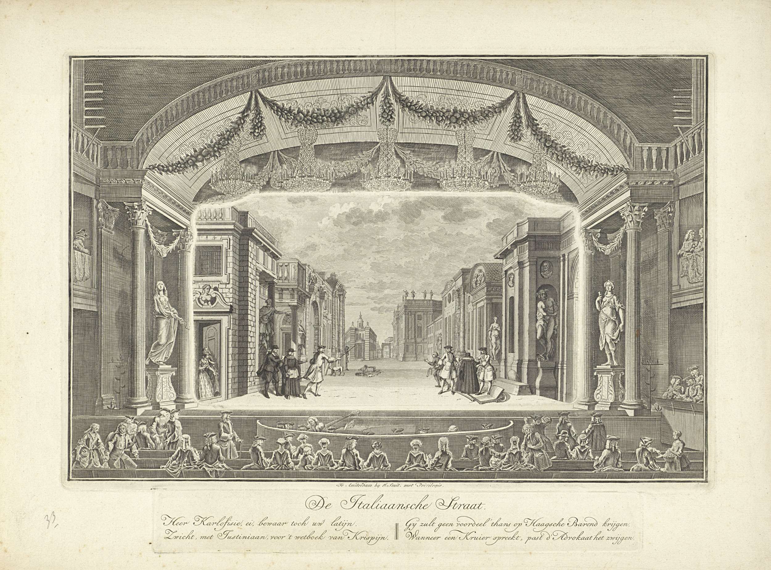 Schouwburg met toneeldecor: De Italiaansche Straat