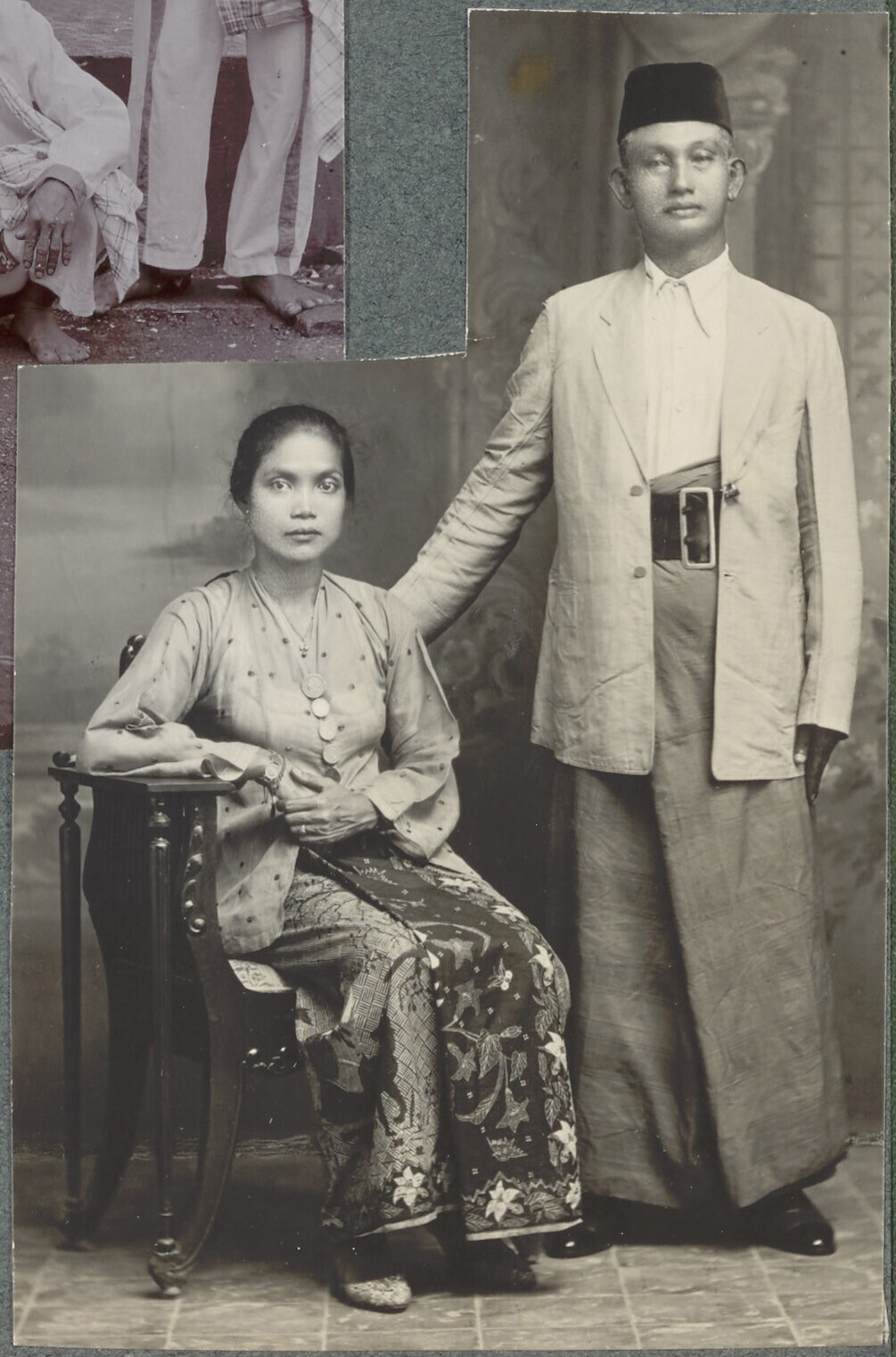 Man op een galerij van Hotel des Indes, Batavia