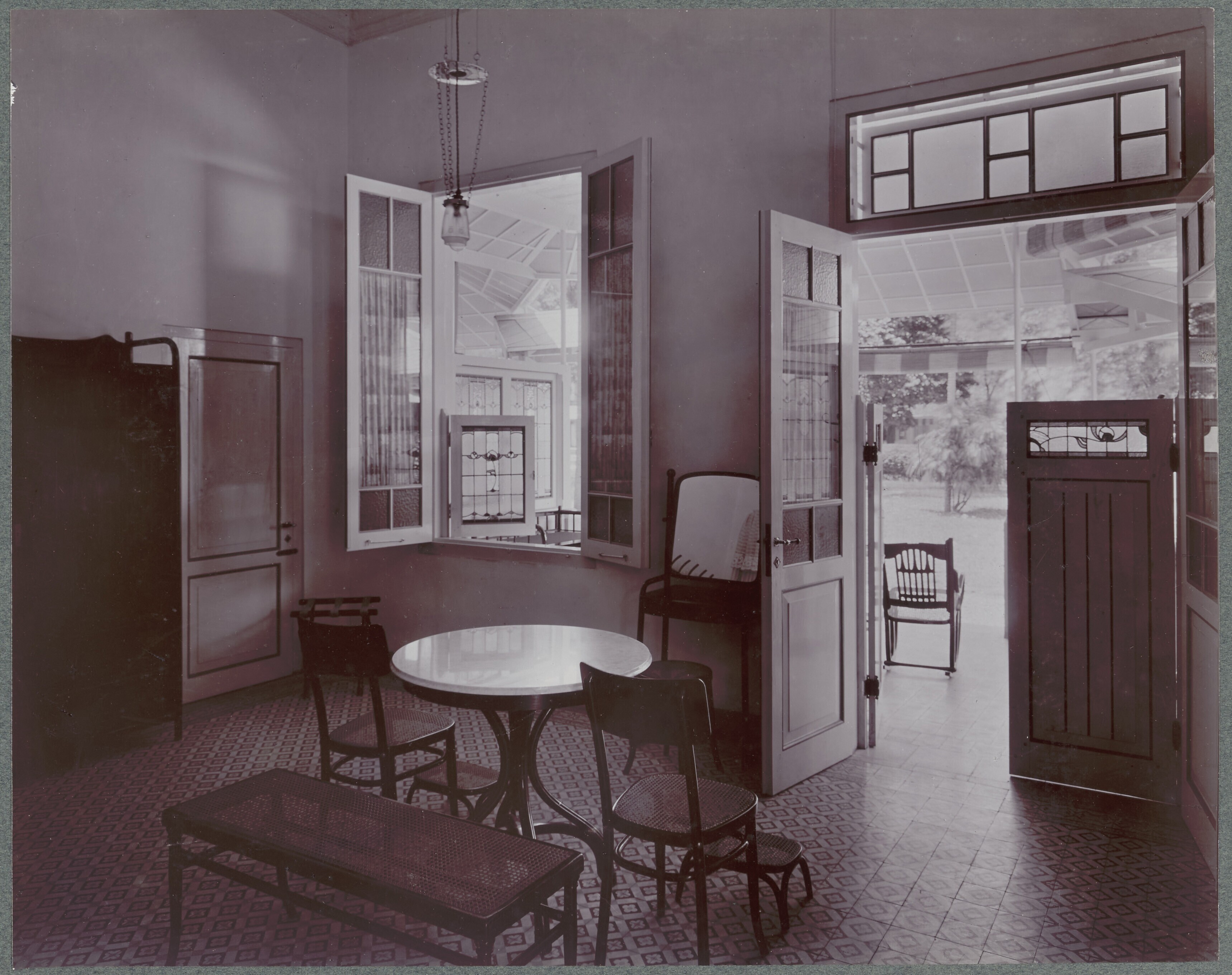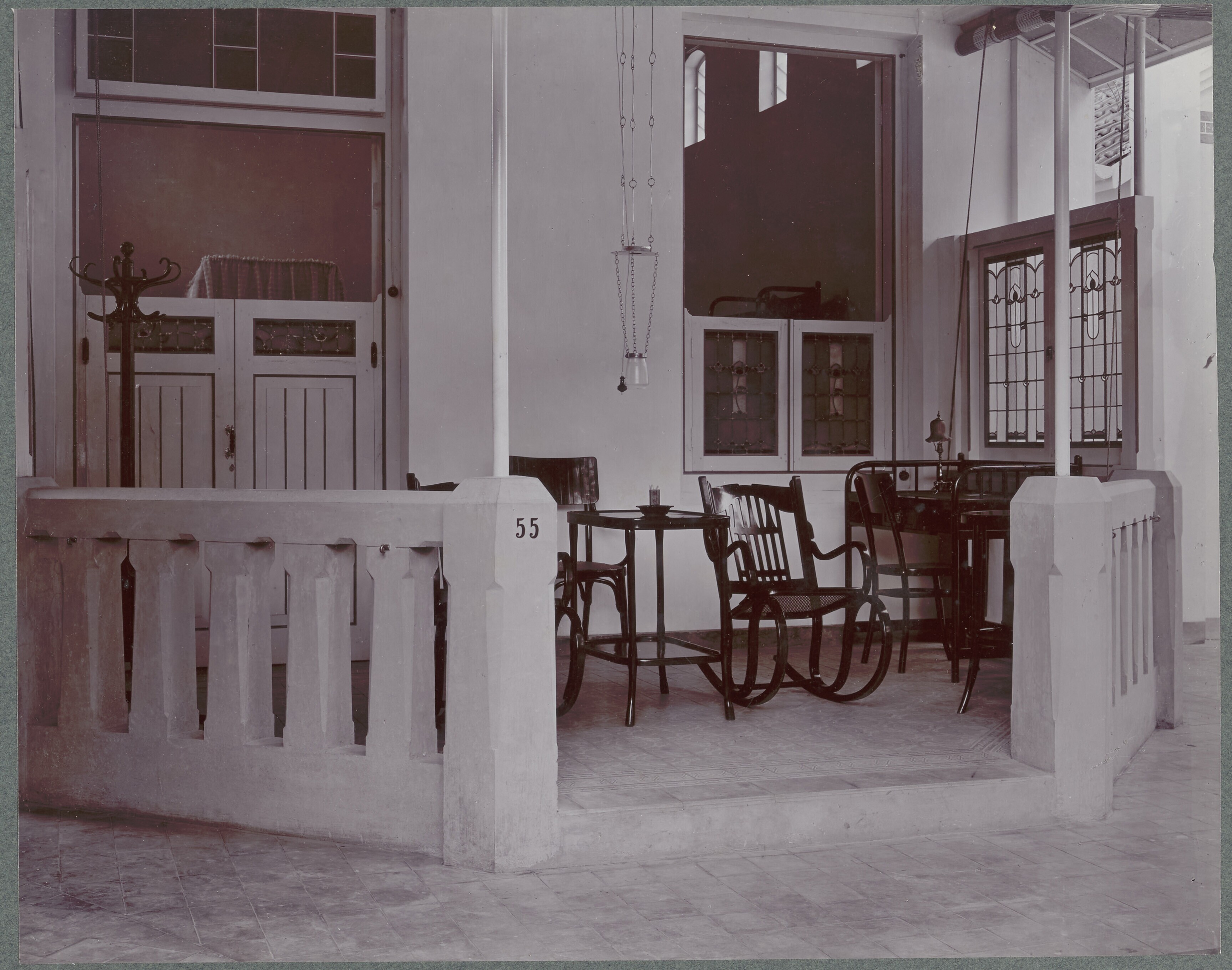 Veranda van een gastenpaviljoen, Hotel des Indes, Ba...