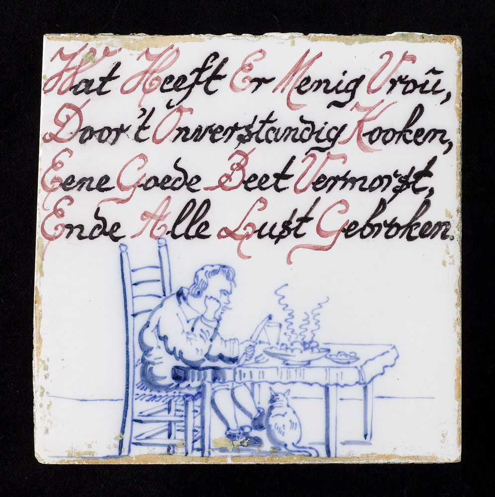 tegel van aardewerk met tinglazuur, voorstellende: h...