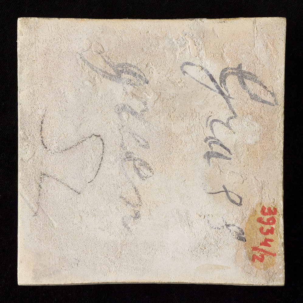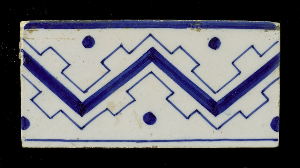 Randtegel in tinglazuur, voorstellende randtegel met...