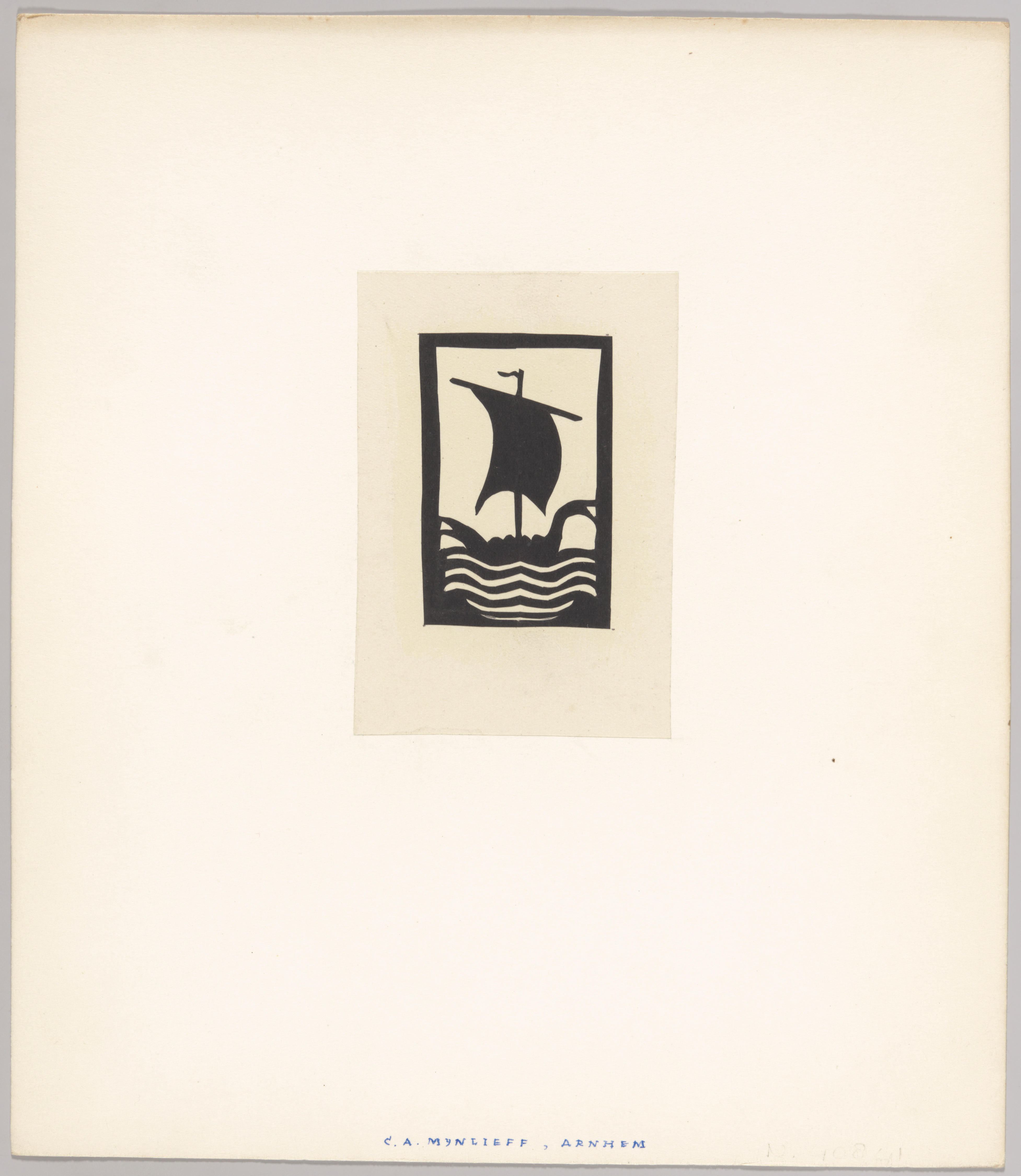 houtsnede op papier, geplakt op zwaar papier (4)