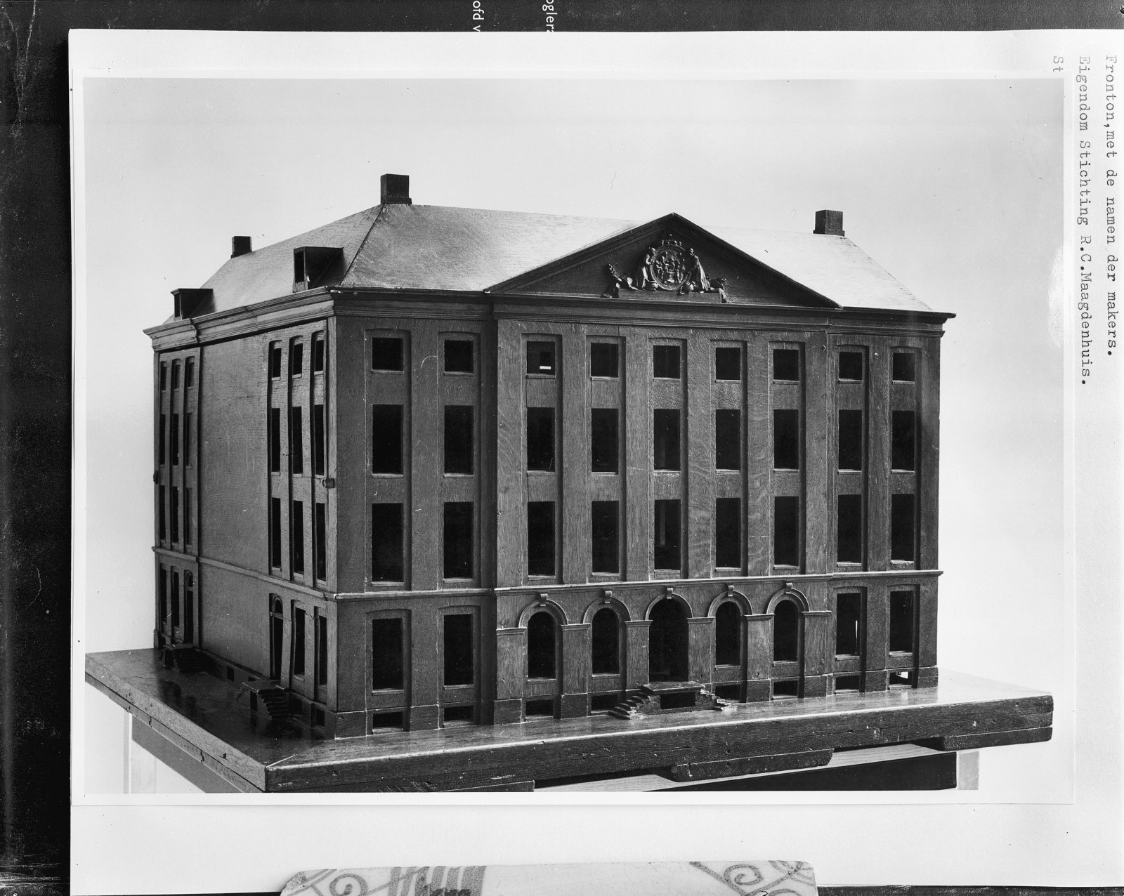De maquette uit 1783, zijgevel en achtergevel