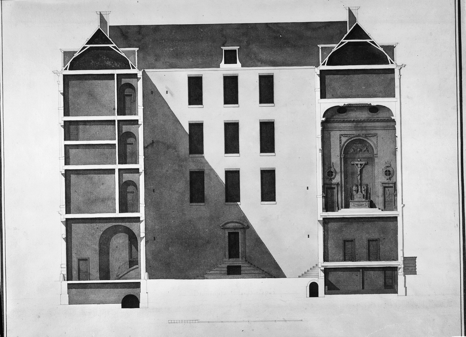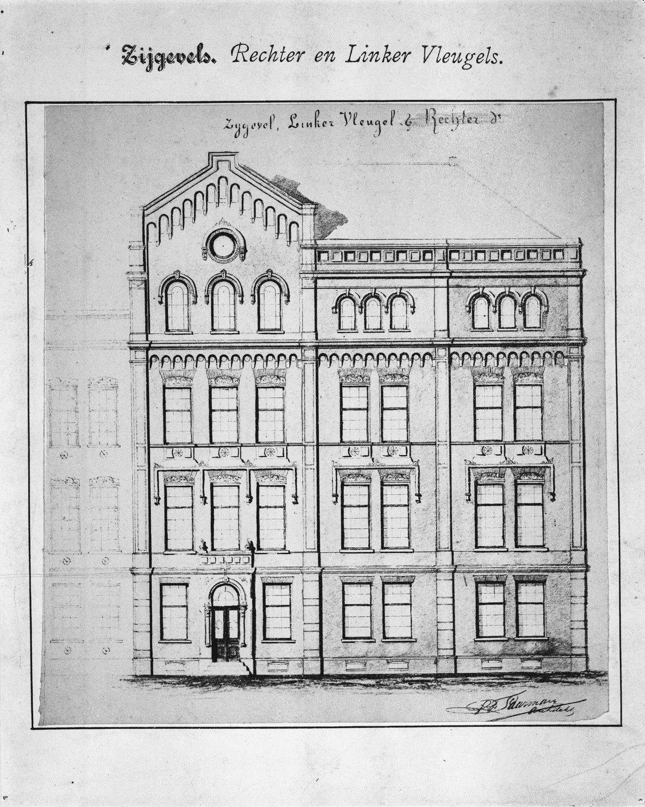 ontwerp tekening doorsnede gezien naar de achterzijd...