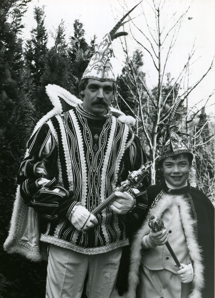 Zwart-wit foto van de carnavalsoptocht in Herwen ca....