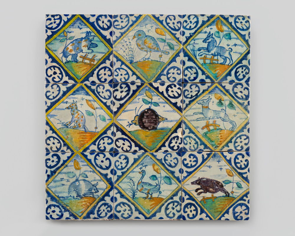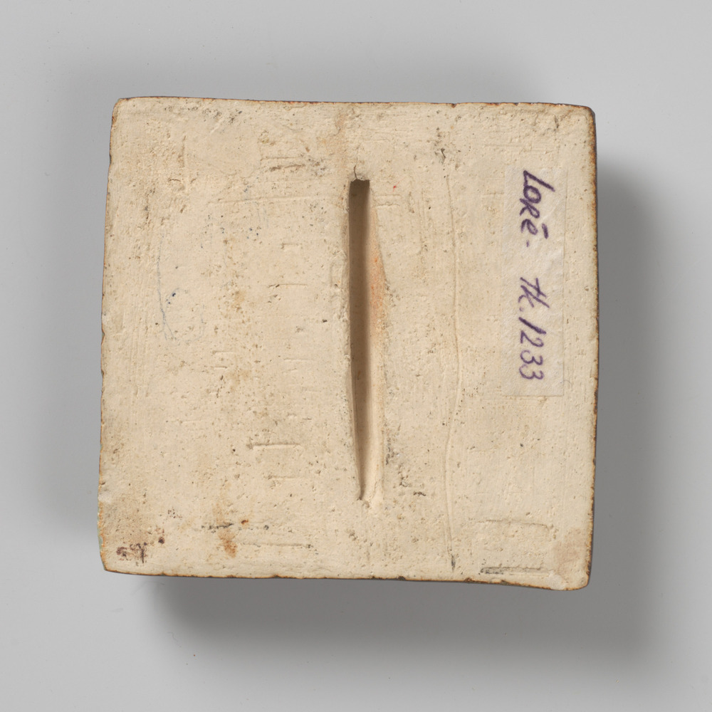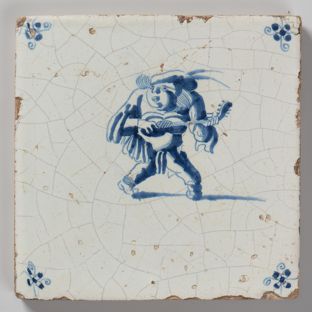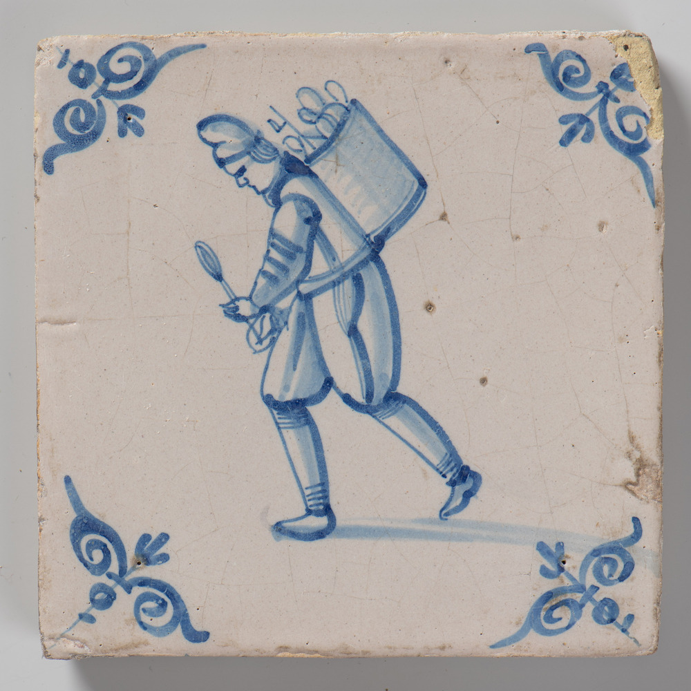 tegel van keramiek met tinglazuur, voorstellende: so...