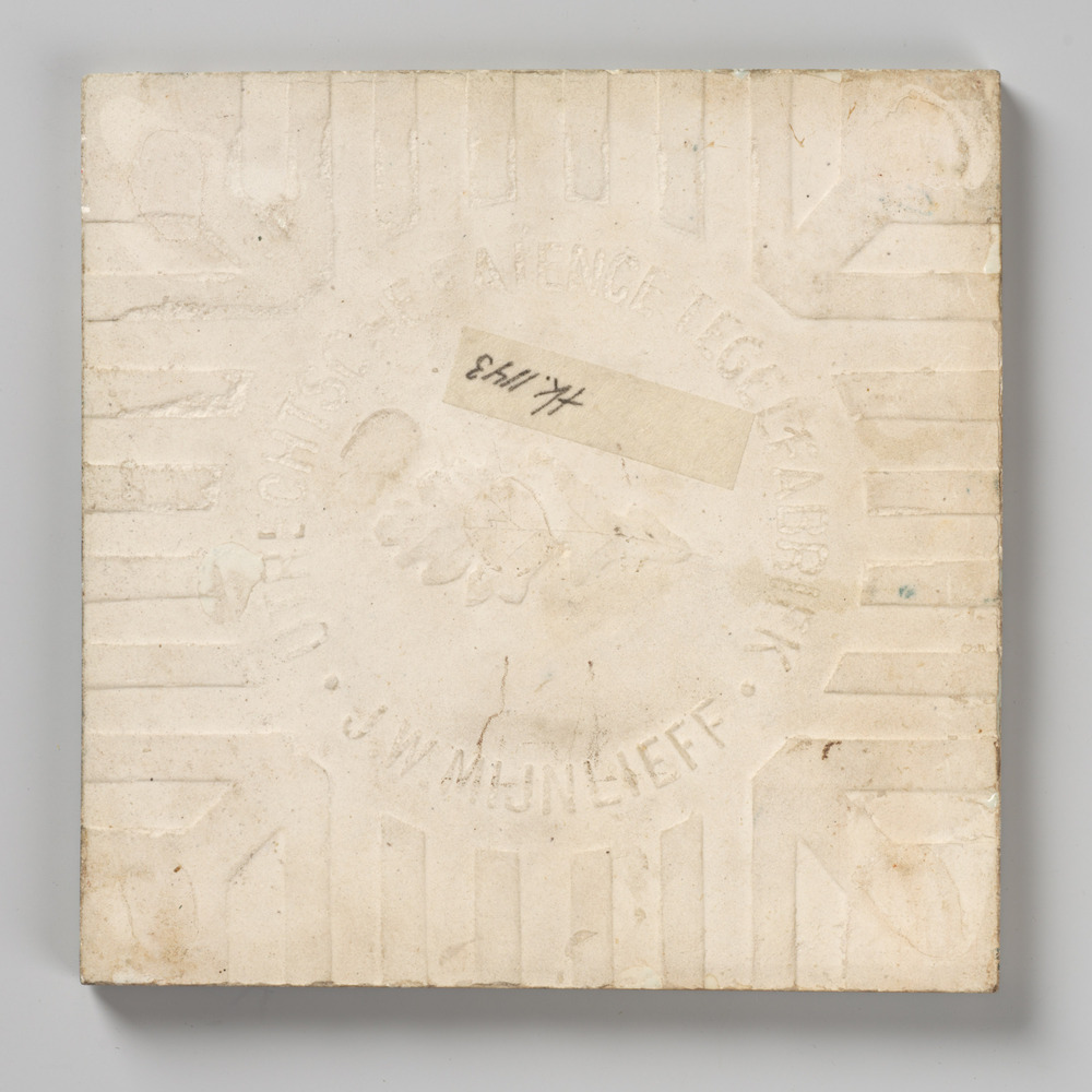 tegel van aardewerk met tinglazuur, voorstellende: l...