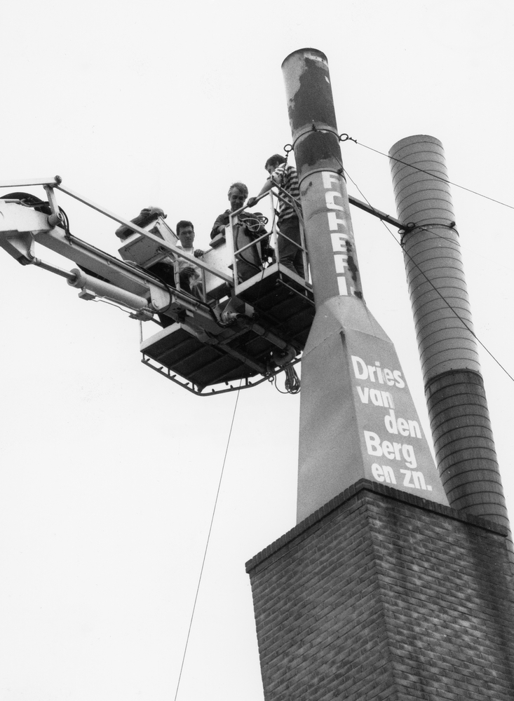 Werkzaamheden aan de schoorsteen van palingrokerij D...