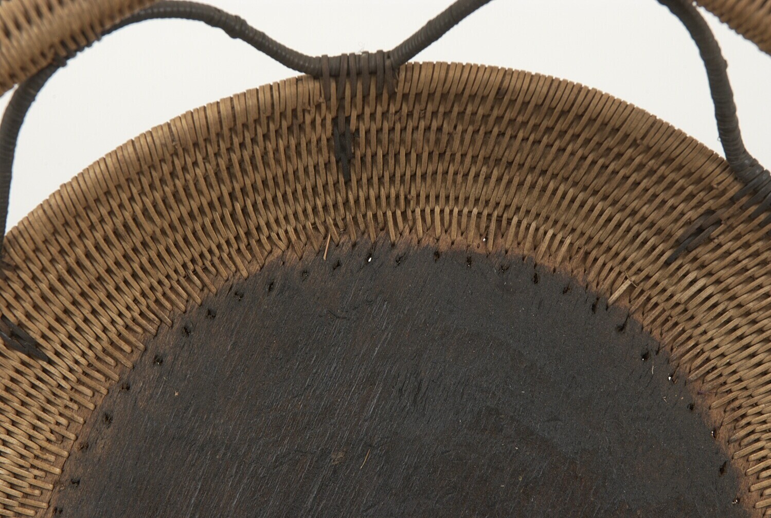 Gevlochten mand van bamboe en hout
