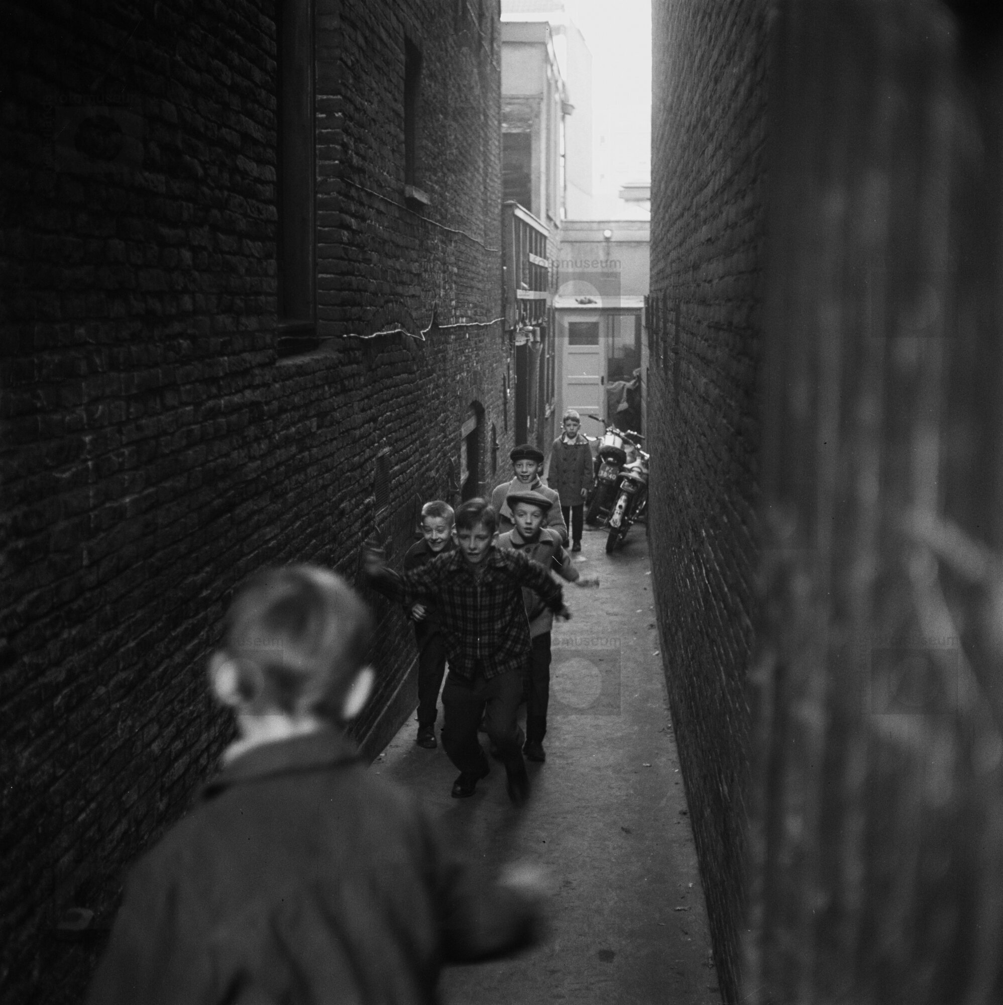 Amsterdam. Jongens voetballen in steeg