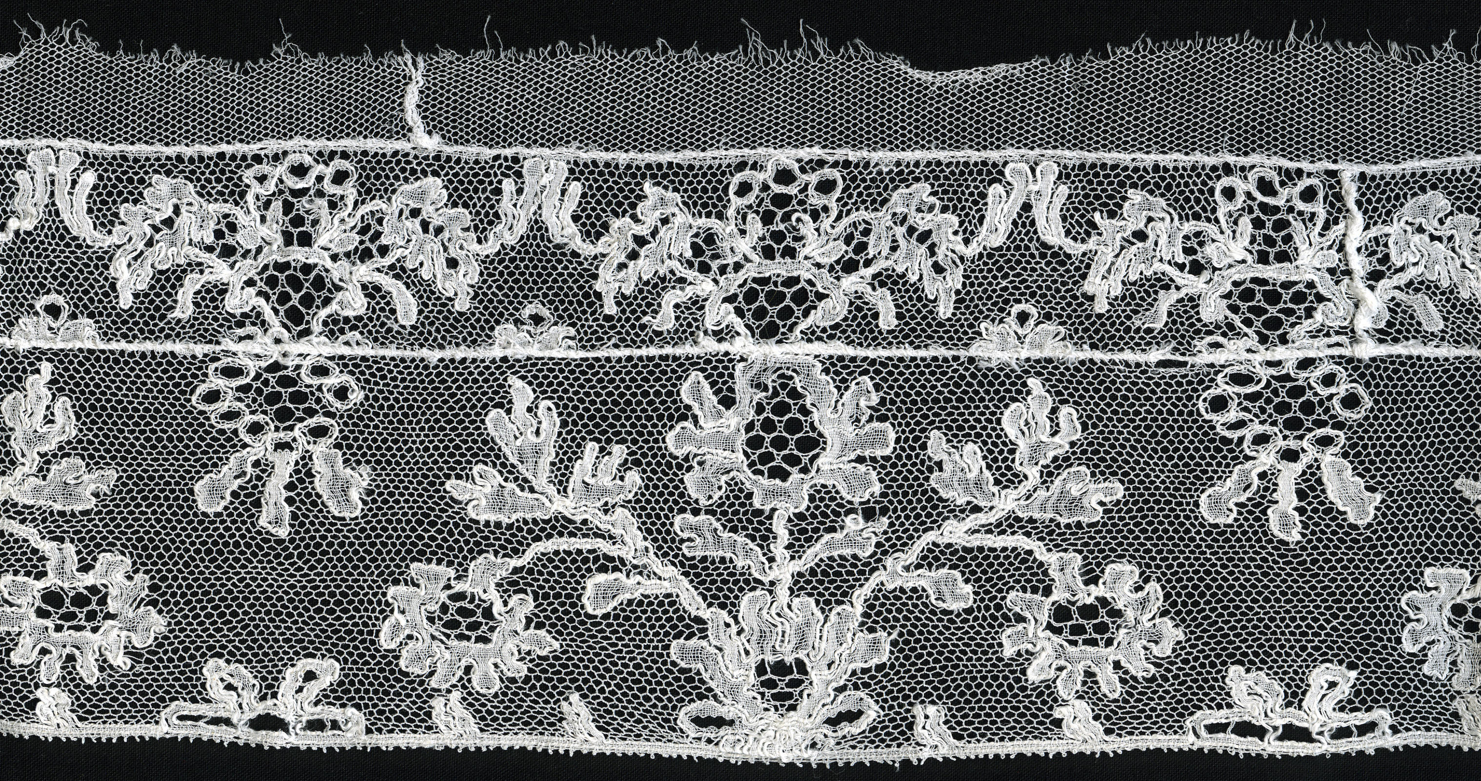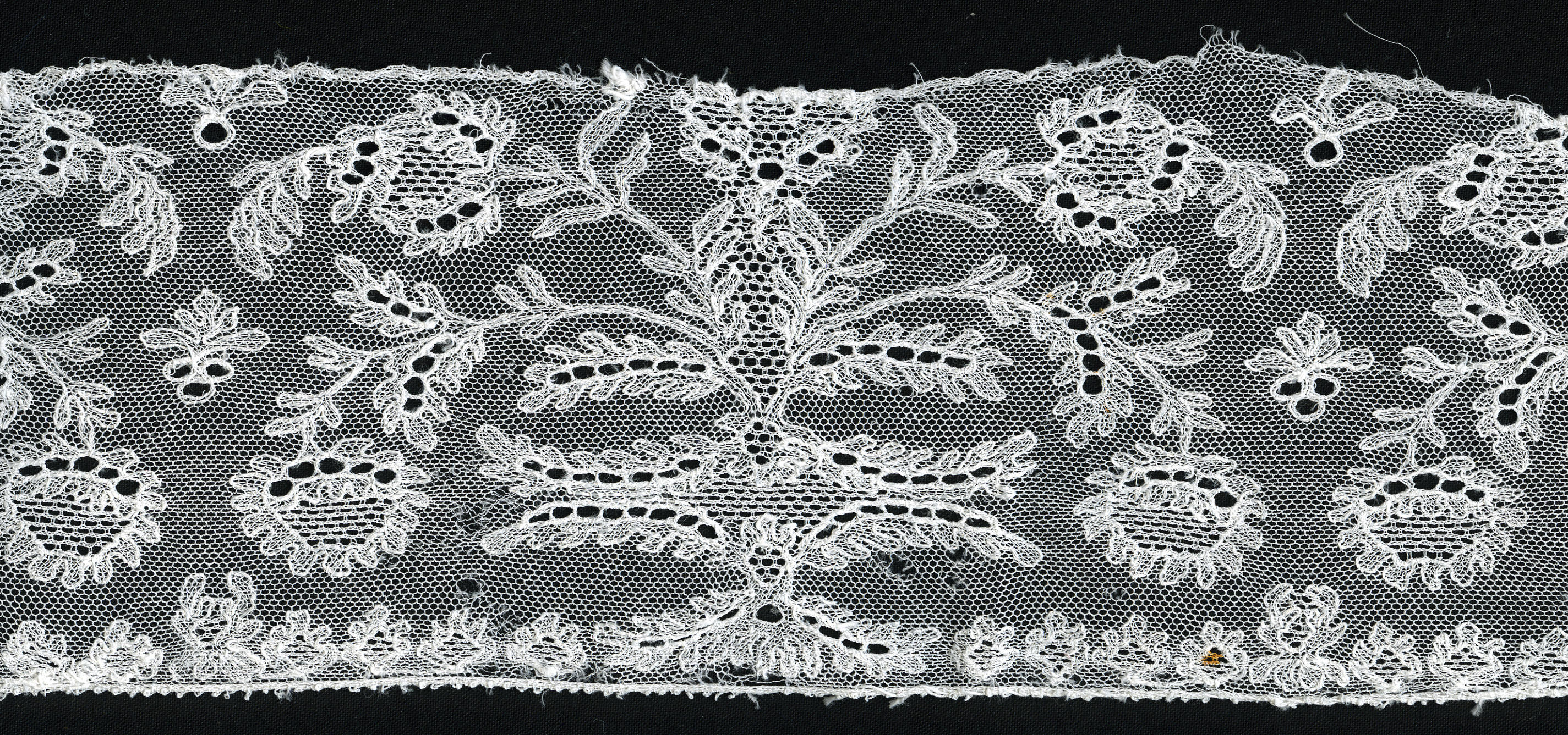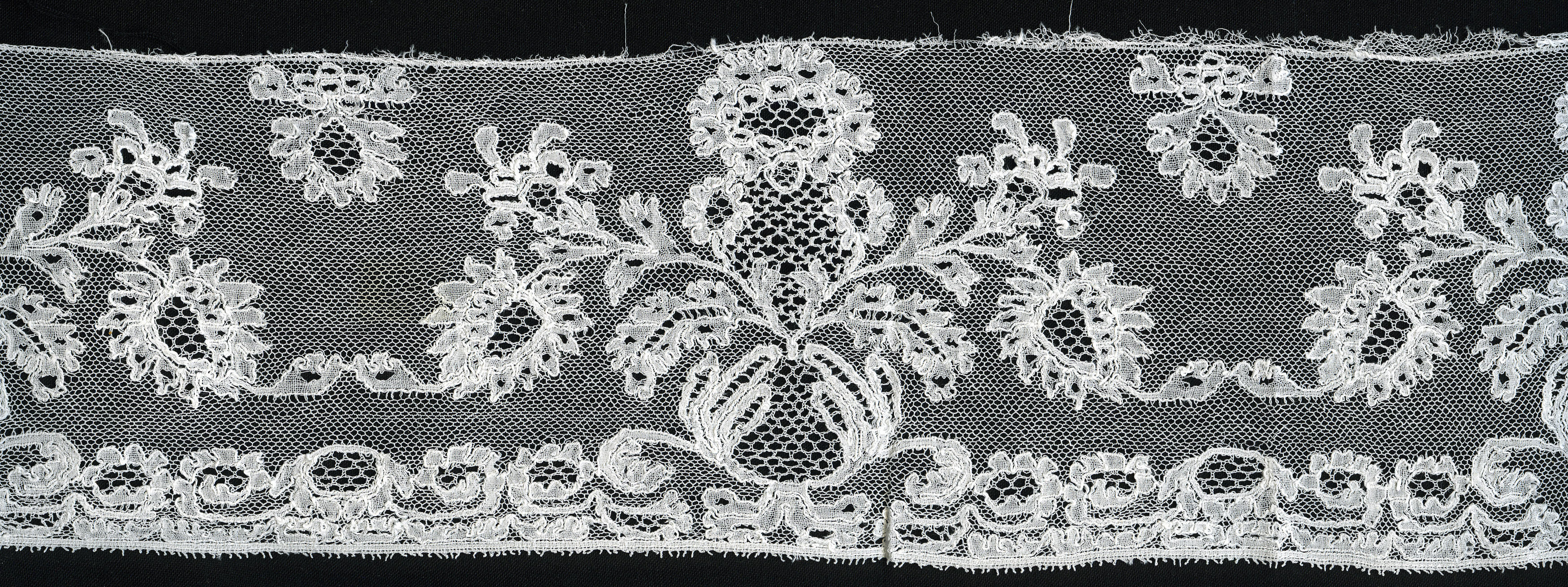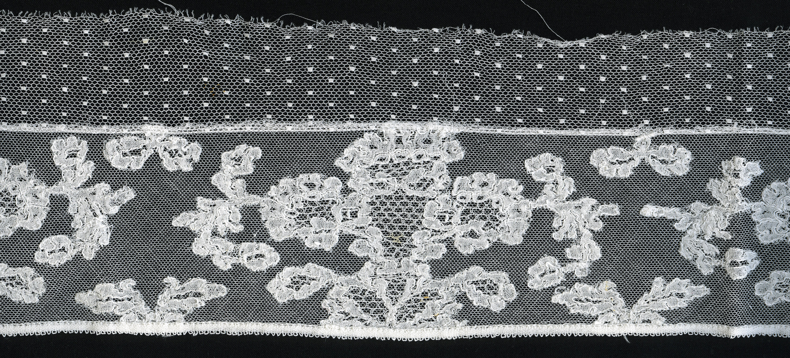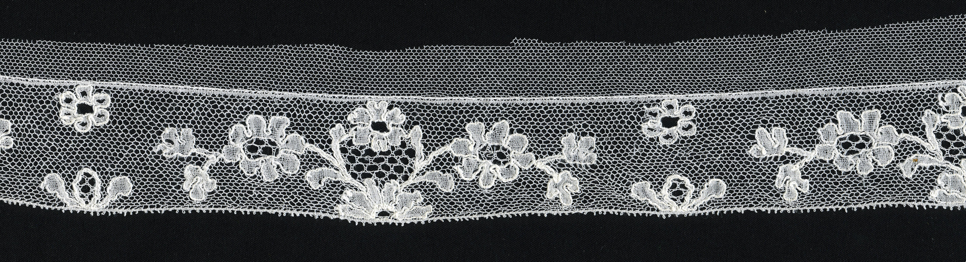 Strook versierde tule, afkomstig van een Drentse flo...