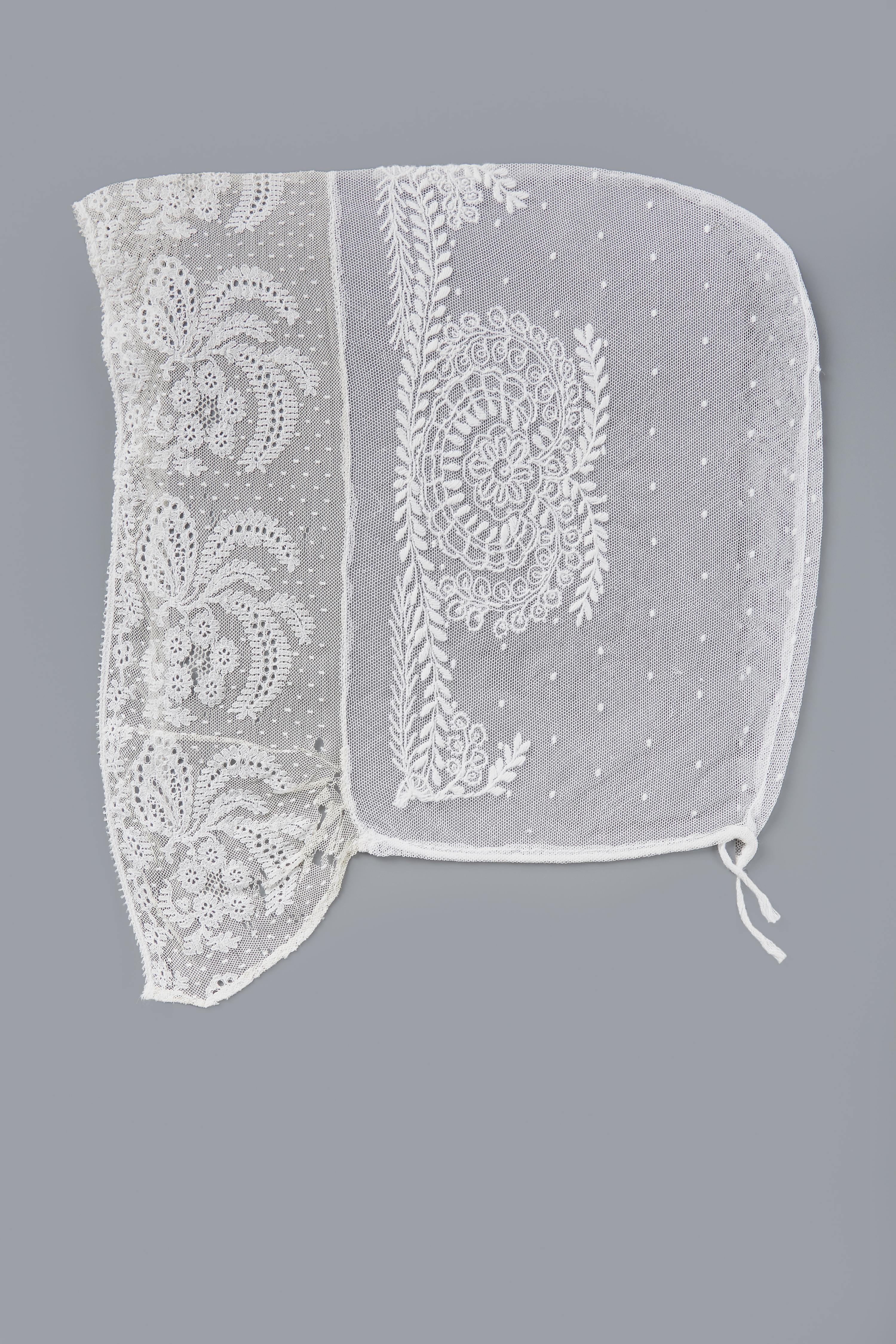 Strook versierde tule van een Drentse floddermuts (s...