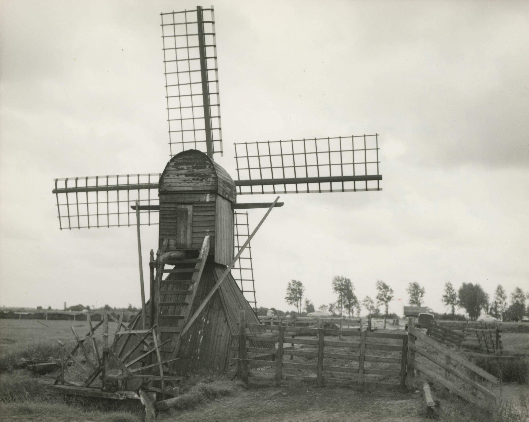 Poldermolen, Workum, 1965 (zwart-wit foto)