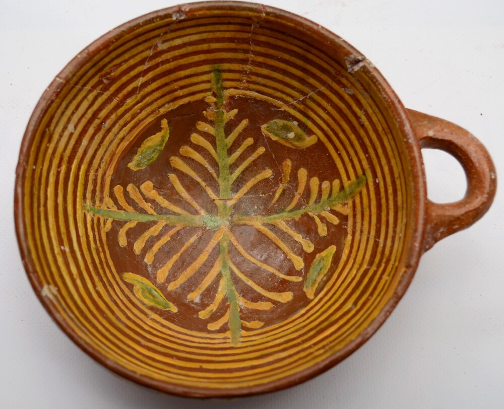 Kom voorzien van slibdecoratie gemaakt van slibaarde...