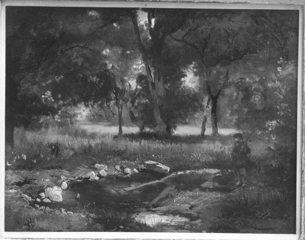 Bosgezicht met vijver