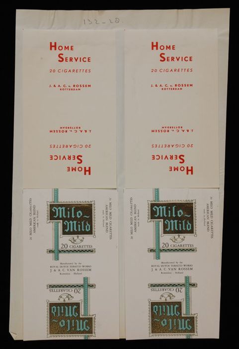 Vel papier met pakjes "Home Service, Milo Mild" siga...