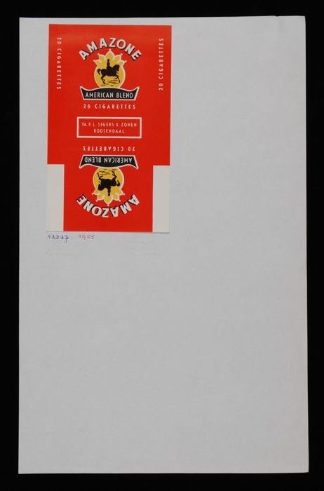 Vel papier met pakje "AMAZONE" sigaretten
