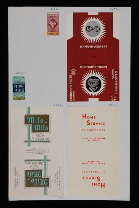 Vel papier met gedrukte wikkels van Van Nelle's "KOR...