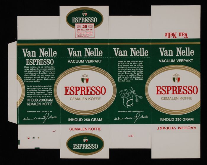 Ongevouwen doos Van Nelle's "ESPRESSO" koffie, vacuü...
