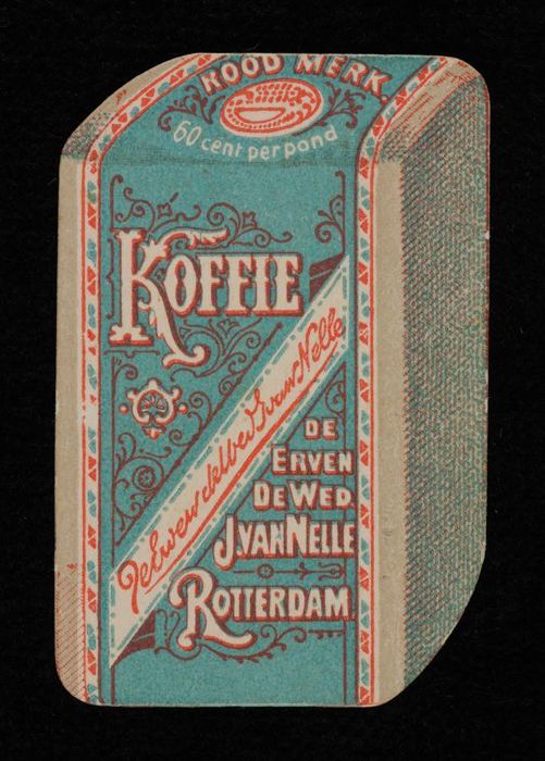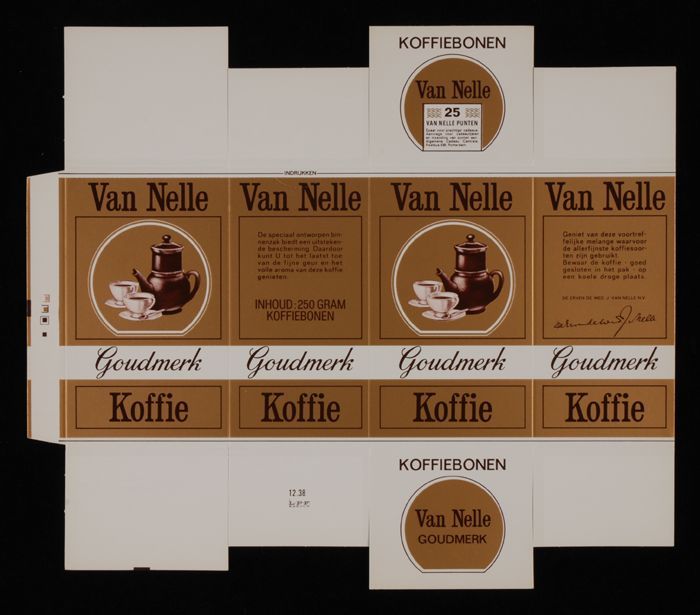 Ongevouwen doos Van Nelle's "Goudmerk" koffie, bonen...