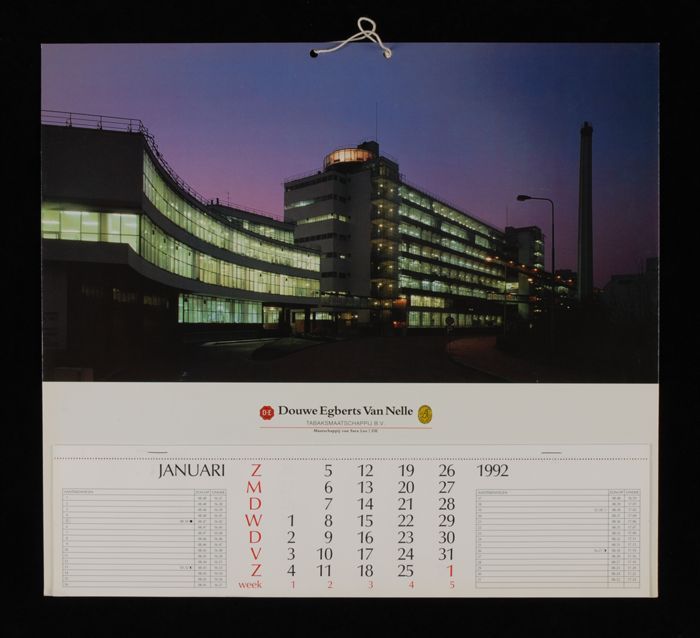 Kalender met afbeelding verlichte fabriek van Van Nelle