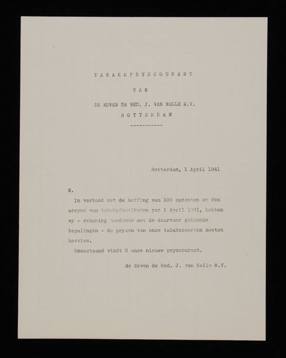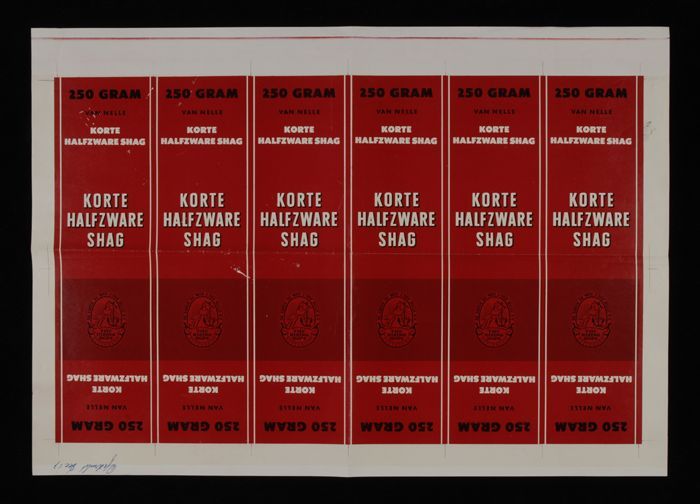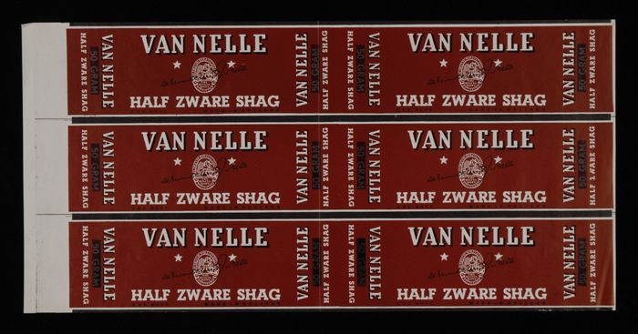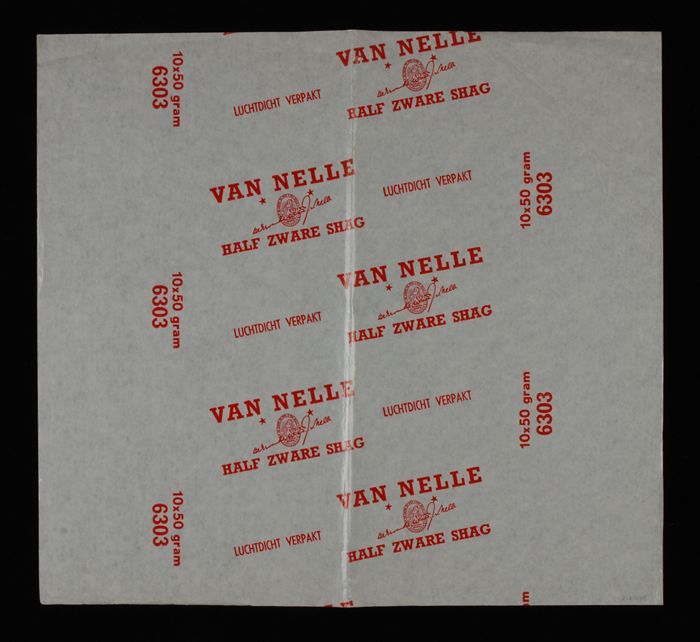 Vel papier met gedrukte wikkels Van Nelle's "HALF ZW...
