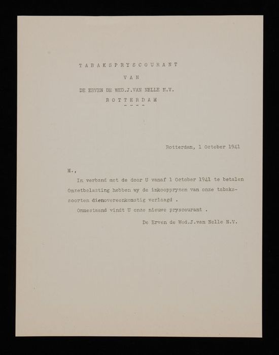 opdrachtgever: Erven de Wed. J. van Nelle / importeur: Jan Bodegom & Co. N.V.