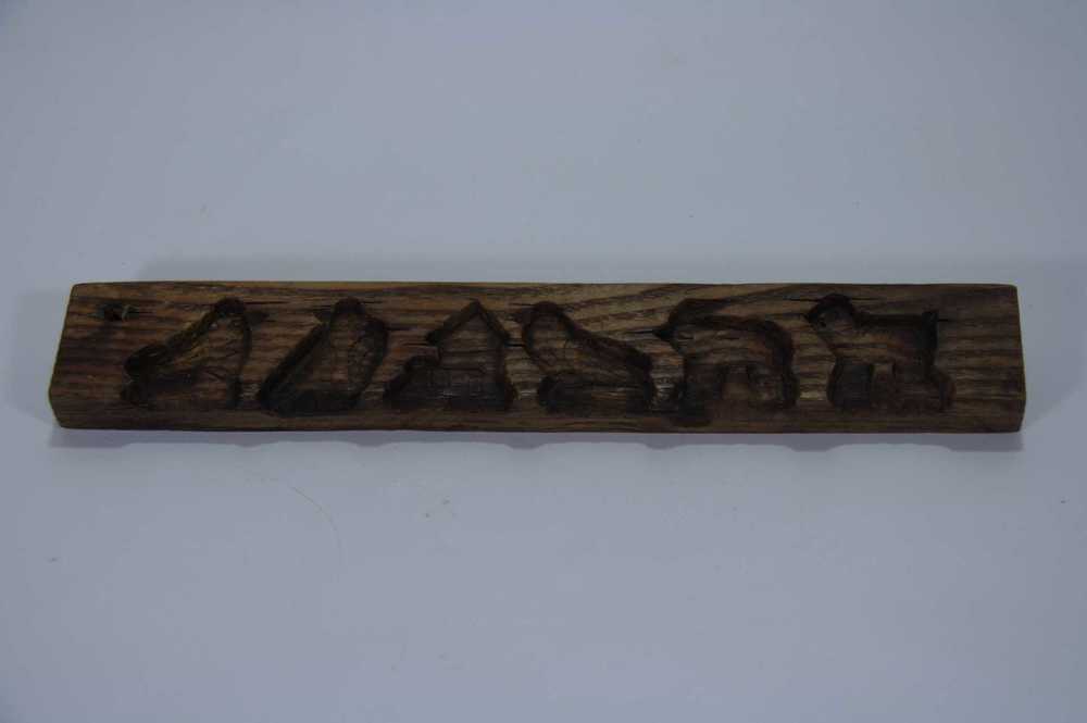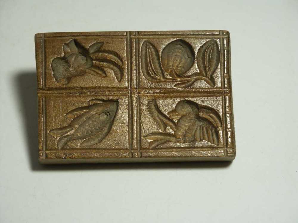 Suikerwerkplank van hout met 6 figuren: 3 vogels, ee...