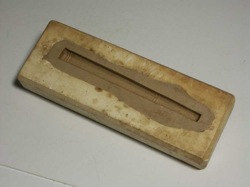 Marsepeinvorm van gips in de vorm van een mosselschelp
