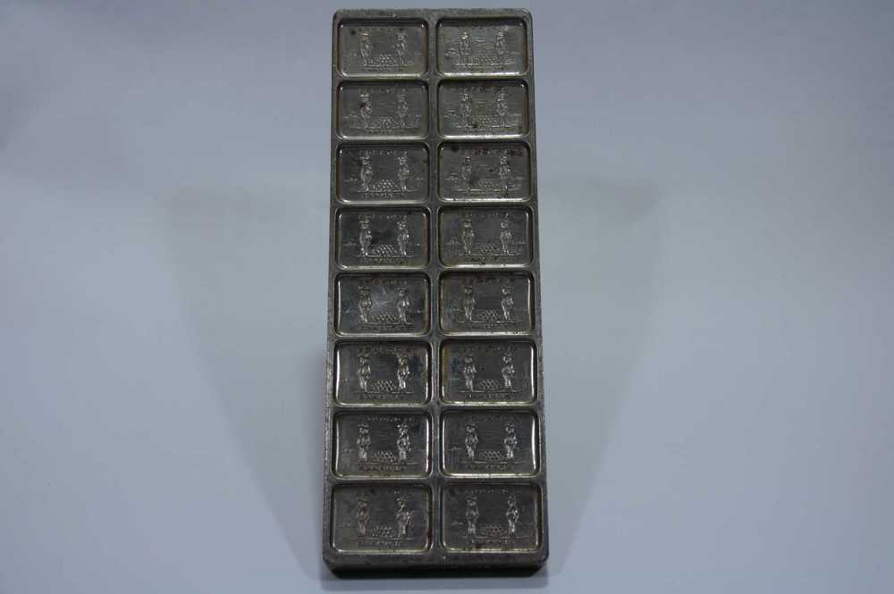 Chocoladeplaat van metaal voor 16 tabletten met kaas...