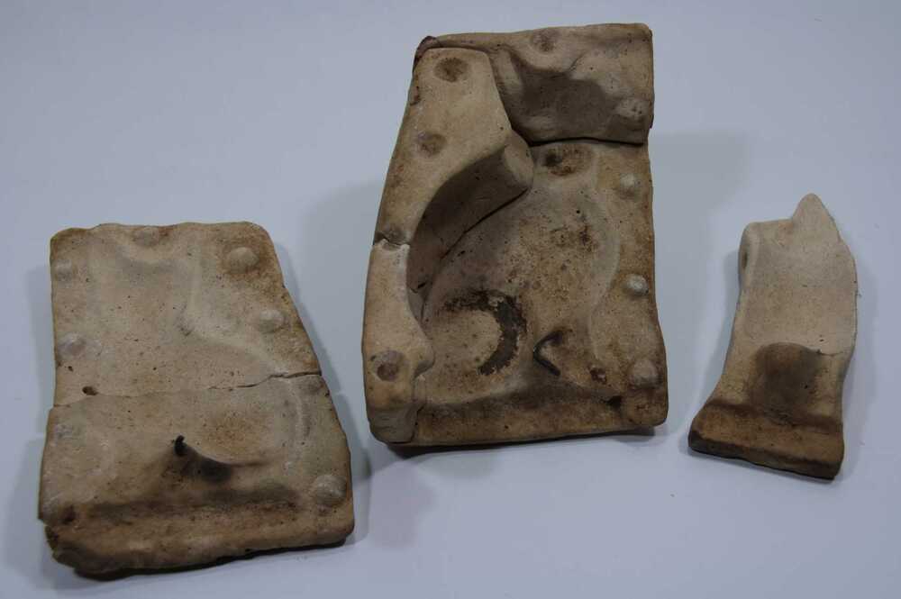 Stuifvorm van gips met afbeelding van twee paardenho...