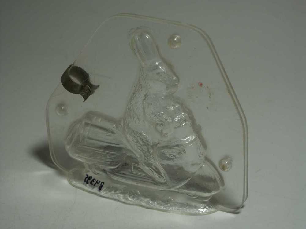 Suikerwerkvorm van gips in de vorm van een kip op ee...