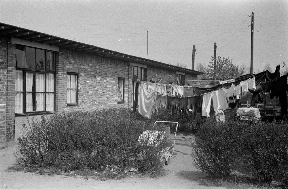 Noodwoningen, Tuindorp: kinderwagen, was aan de lijn