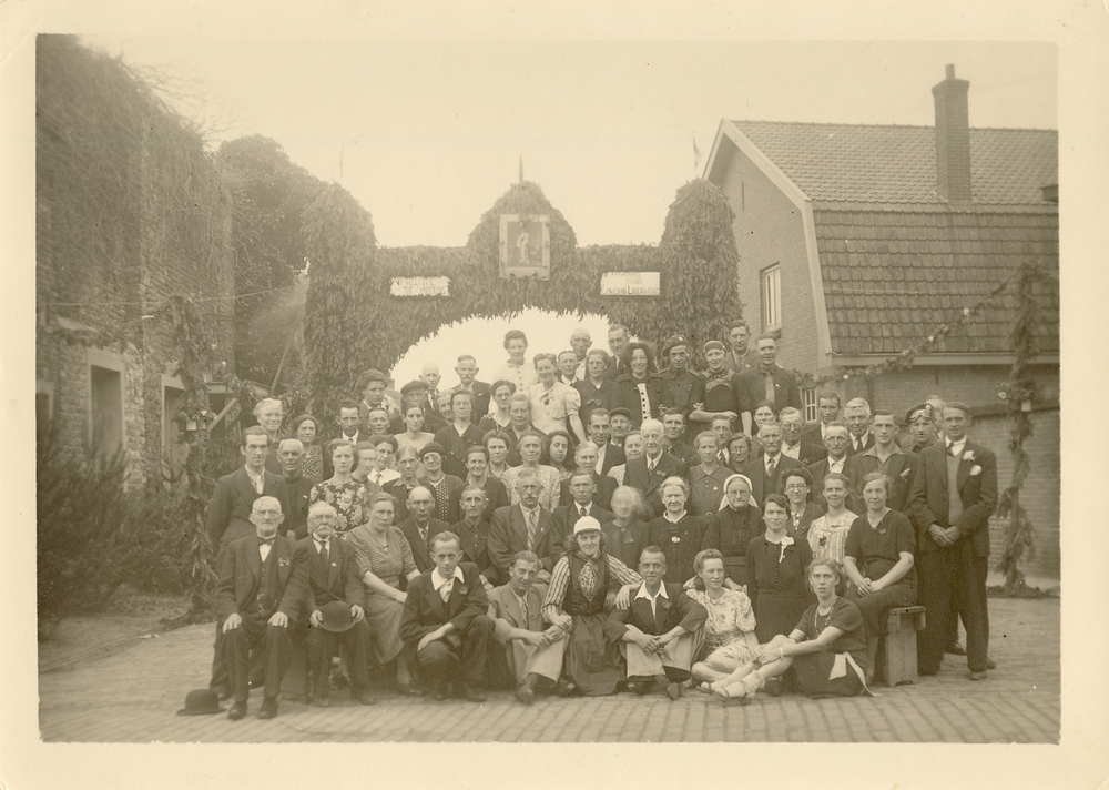 Groepsportret van deelnemers aan de Bevrijdingsfeest...