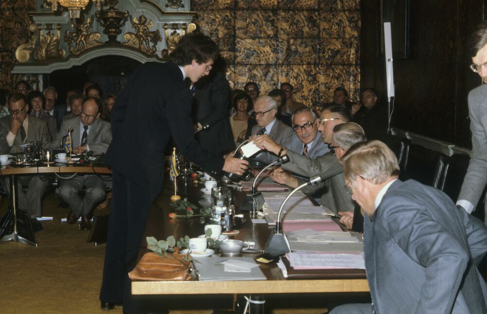Vergadering van de gemeenteraad in de raadzaal van h...
