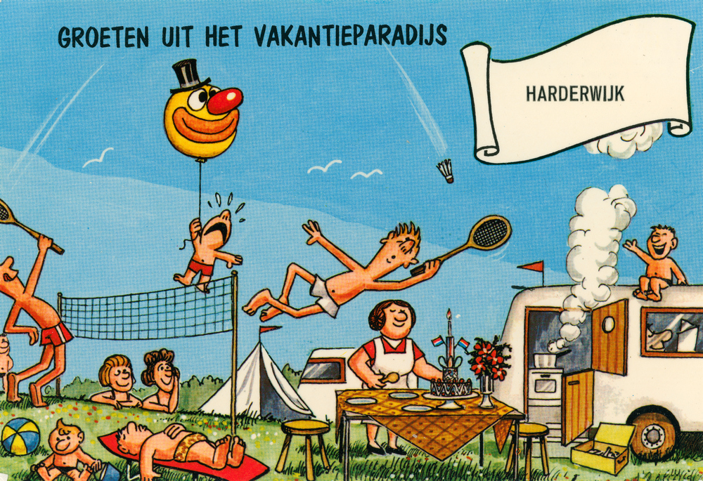 Prentbriefkaart, getiteld 'Groeten uit het vakantiep...
