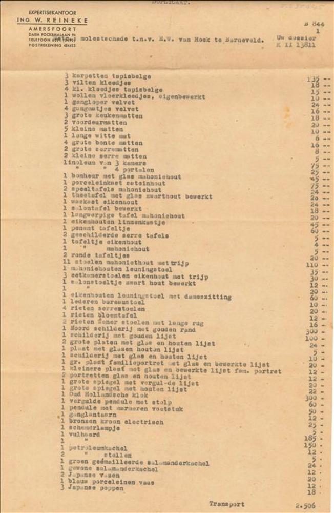 Formulier, Molestschade t.a.v. E.W. van Hoek te Barn...