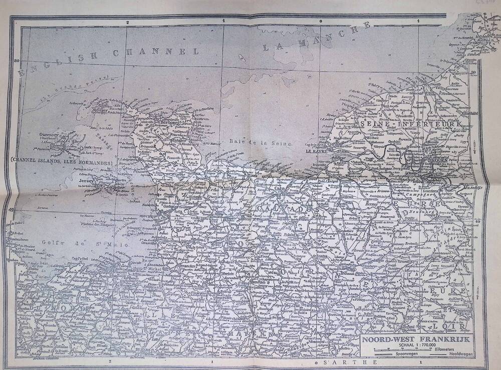 kaart van Noord-west Frankrijk, schaal 1:770.000