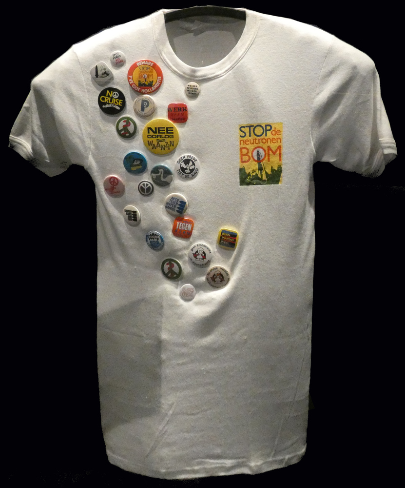 t-shirt, katoen wit, 'Stop de neutronenbom'