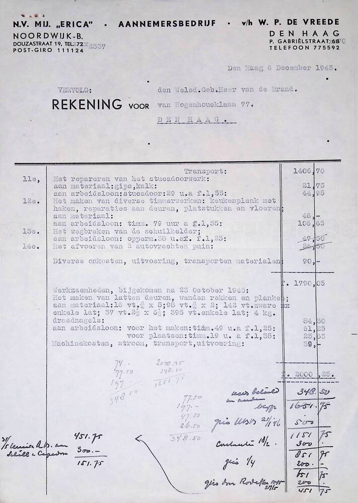 Brief van N.V. Mij "Erica" Aannemersbedrijf aan B.W....