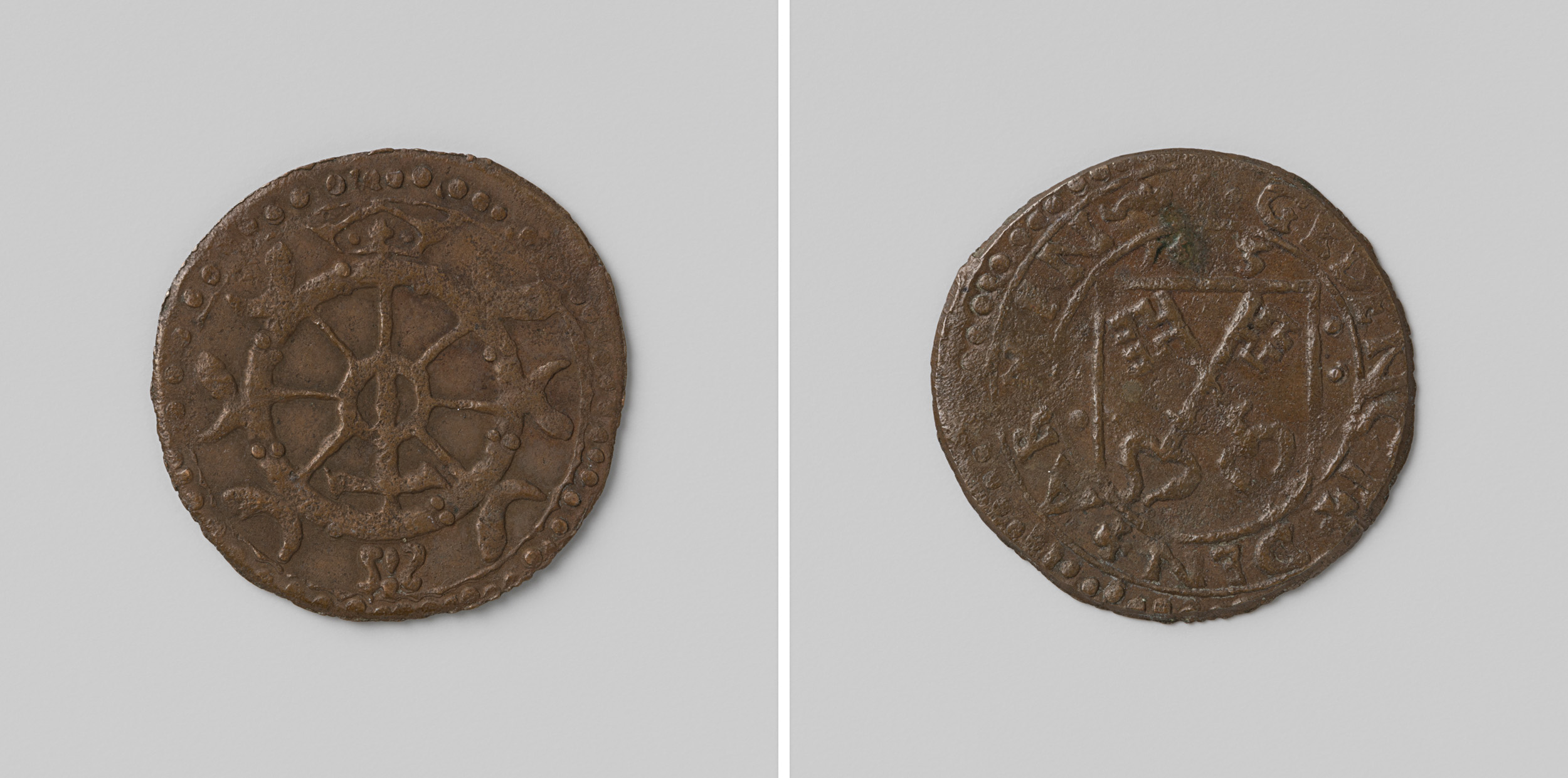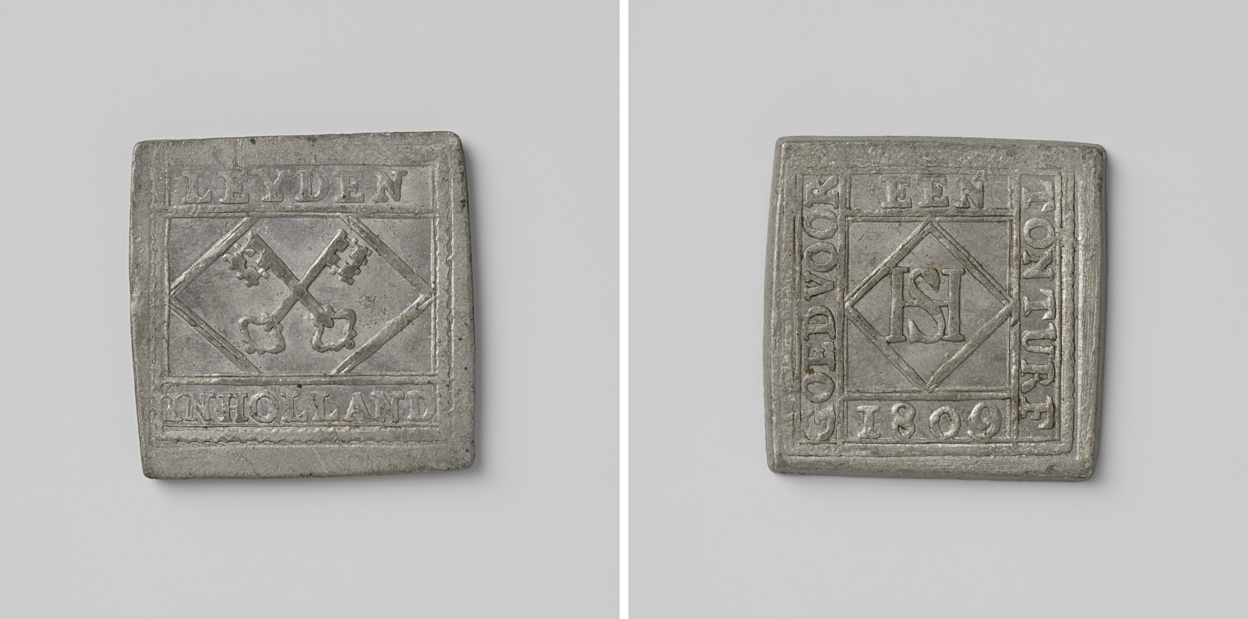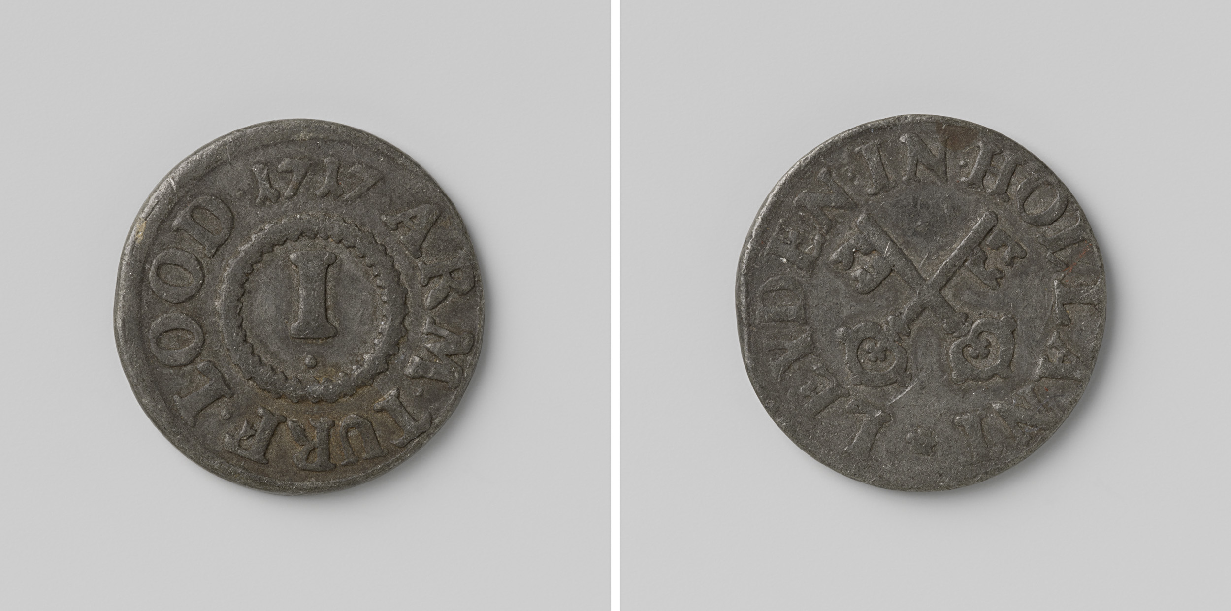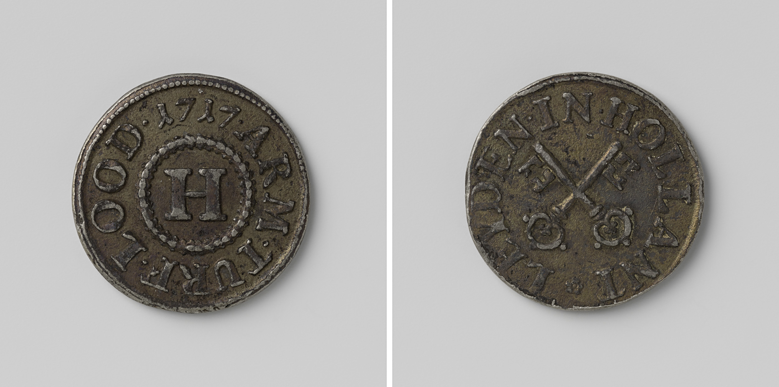 Armenpenning van de stad Leiden, die bij uitdeling r...